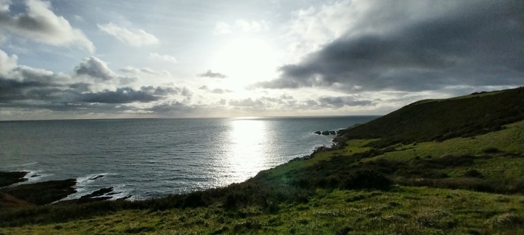 Looking back the other way, glorious sunshine on the Mewstone and across to Cornwall