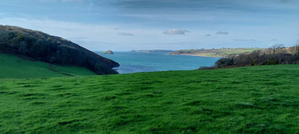 After four Dartmoor walks in a row we looked for something by the sea, without driving too far. This ruled out a new coastal area for me as I’ve done all of south Devon and Cornwall, so a revisit was in order. The area around Noss Mayo is superb and on a day like today it shows off the best part of living in this corner of the country. The drive here is about 20 mins, although we could have parked in Noss Mayo as well and cut 5 more minutes off that. As it was we had a nice warm up, descending from Stoke Point, along lanes and through woodland down into Noss Mayo. Newton Creek was glinting in the sunshine on what looked to be a near high tide time, we turned to head through the woodland out the Gara Point, passing the ferry point to take you across to the next coastal path section. After a coffee stop near the ferry point, we soon walked up to Mouthstone and then Gara Point with wide views across the English Channel, the Mewstone standing like a sentinel off Wembury Point, guarding the entrance to Wembury Bay. Turning east we then walked the long promenade, which was a carriage ride built by Lord Revelstoke in the 1800s. It ran for 9 miles, sitting high along the cliff tops and running from Noss Mayo right around to Beacon Hill and beyond. The carriage ride allowed the Lord to entertain his dignitaries, including Edward 7th, and show off his Membland estate. Finally we dropped to the Revelstoke caravan park, originally owned by the Co-op, to allow ordinary people from Plymouth to have a place to go on holiday. The park is now privately owned but still holds a really old church in St Peter the Poor Fisherman, which we had a good look around before climbing steeply back up to the car. All in all a great walk, in superb conditions and a nice contrast to some of the greyer walks we have had on the moor recently.