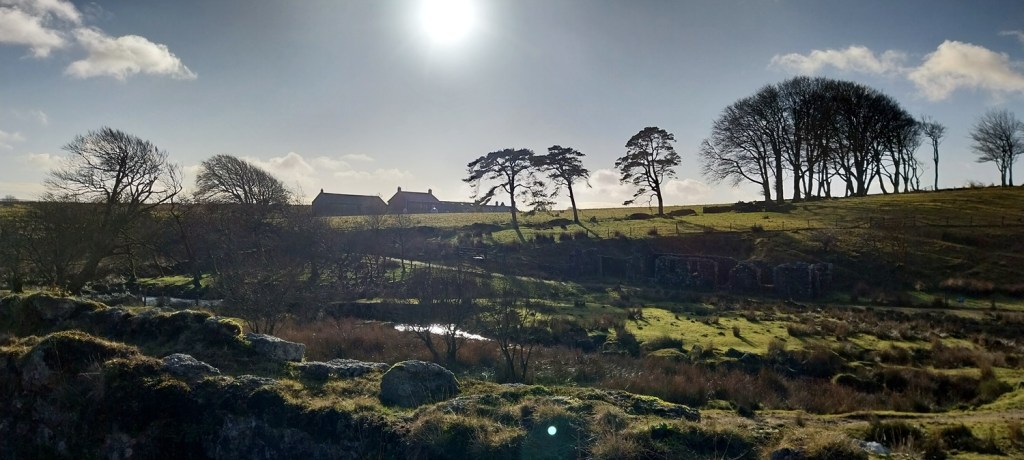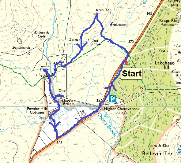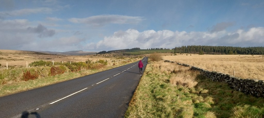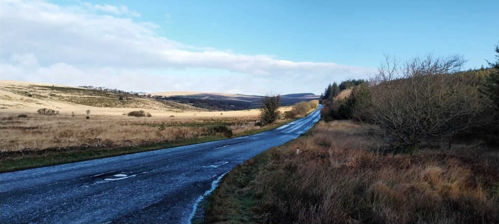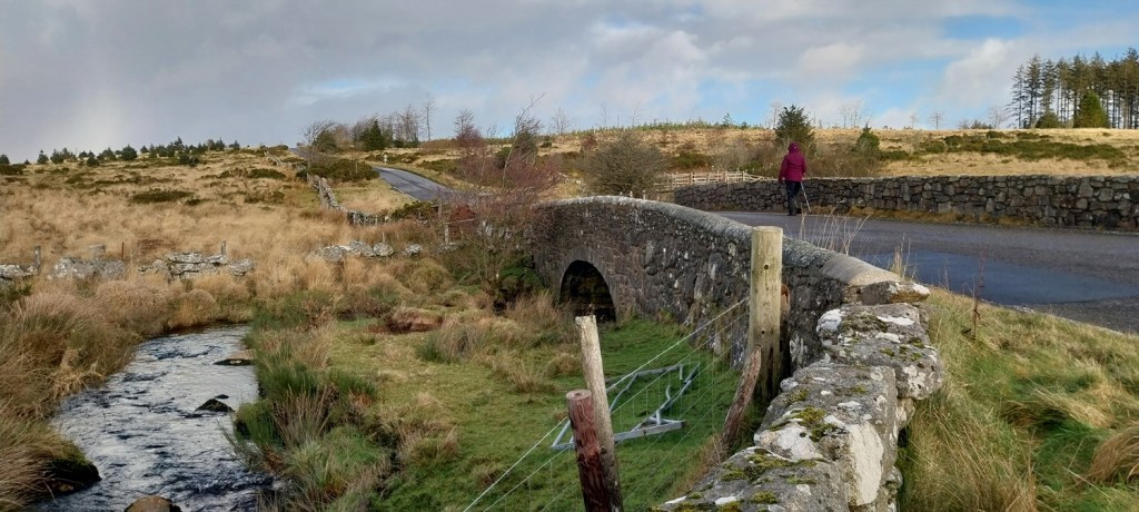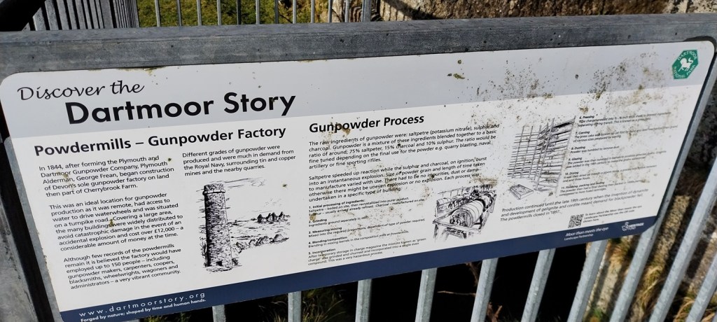 Sunny blue skies above as I look from the layby, where we parked, to Assycombe Hill and Fernworthy Forest. Bellever Forest is on my right here and the hill holding Arch Tor is on the leftThe dark blob of Longaford Tor and Higher White Tor to the right of thatWe were nearly at Arch Tor when I turned to take a photo back into the sunArch Tor with Fernworthy Forest on the left and Hameldown the flat topped hill on the rightA couple of rock basins forming on Arch Tor as I look in the direction of Powdermills (trees to the right of centre)Powdermills, or one of the incorporating mills. The whole place was established in 1844 to provide gunpowder for the navy, likely at Devonport Dockyard and the quarries taking granite from Dartmoor. The incorporating mill was were water was added to the green charge. Water came along leats from the Cherrybrook and the East Dart River. The walls on the building are very thick and it had a canvas roof, any accidental explosions would take the roof off first and direct the blast up and away from peopleHow they made itInside the incorporating mill, there were two rooms like this and between them the water wheel in a trenchThe chimney for the drying house, which was just below it. Here the gunpowder was dried before packing.The Lych Way runs through the siteCharge magazine building 4 is near the drying mill and chimney. We sat here for lunch. Back in 1850s it would have been a store for the gunpowder (Green Charge) before being worked in the incorporating mill number 4We walked out along the path, passing the Press House, Corning House, Pressing House and Preparation Rooms. All used in the gunpowder process. The chimney opposite is part of the Stoving House, possibly for making charcoal although it is contested what the reason for this building was.Looking back along the CherrybrookFrom the Stoving House to Powdermills CottagesLooking back from the outbound track to Bellever Forest and where our car is parkedThe cafe here has a board marking all the different ways to say WelcomeLooking back to PowdermillsAnd towards our carLinda starting out along the B3212, looks cold, and it was coldThe Higher Cherrybrook Bridge and the story of the Hairy Hands comes from this area, were on dark foggy nights, mysterious hands steer cars from the road. It might just be the adverse camber on the road crossing the bridge, but let’s not get in the way of a good storyHigher Cherrybrook Bridge. Bellever Forest behind and plenty of pine plantation trees have been felled hereAlmost at the car and the hail and snow sweeps through in the distance. A few hours later the area was turning white. We would be back out on Dartmoor two days later, did the snow hang around and last for us? Next time!!