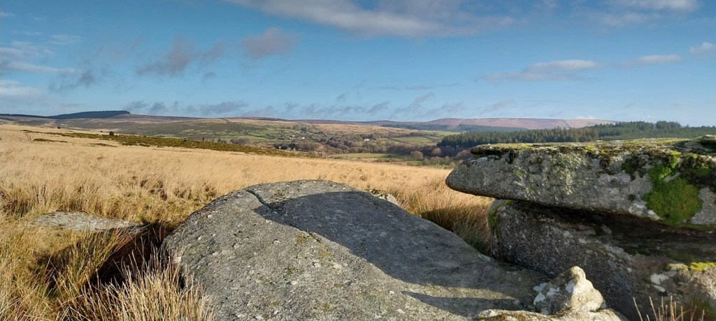 So our first walk of 2026 and we headed, as we normally do, to Dartmoor. We only wanted a short walk, nothing too challenging, but away from the crowds that may well still be out in the holiday period. The area around Arch Tor is normally very quiet, most will head into Bellever Forest when starting out around this area. As a result, Arch Tor, must be one of the least frequented of the named tors on an OS map, especially considering it is visible from the main B3212 and a short stroll away. We looked to park by the Higher Cherrybrook Bridge, but those spots were taken, instead we carried on towards Postbridge, to a handy layby located up the hill from the bridge. We booted up a walked 50 metres along the road to a gate on to the moor proper, crossing boggy land on a well made path had us at the short pull up to the tor. We probably made the tor in 20 minutes from the car. After a few photos in the cold wind we headed off towards Powdermills. I’ll admit I have never properly looked around this area, and today I was putting that right. We had lunch in the sunshine looking beyond one of the chimney stacks and with a view along the Cherrybrook valley, but we didn’t stay long as the wind was cold. We walked out along the path, passing the Powdermills cottages, bunkhouse, pottery shop and Dartcom weather station. Joining the B3212 we turned left and headed for the Higher Cherrybrook Bridge, crossing that and reaching the car with views towards Assycombe Hill and the passing hail and snow showers. A few hours later Dartmoor was covered in snow, but for us we got out before seeing any of it. A fantastic little walk to start the year, and one that could easily be extended into Bellever Forest or along the Lych Way to Longaford Tor