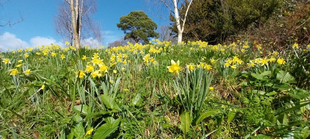Knighthayes gatehouseKnightshayes groundsThis is the entrance, at the rear of the house, still a lovely façade though. The whole house, inside and out was designed by architect William Burges. It was normal that he only designed exteriors, and this is the only one where he did the interior as well. However costs were running high and the flamboyant decoration was too much and the Heathcote-Amory family stopped him from working and brought in John Dibblee-Crace to finish it off.The great hall, with minstrels gallery aboveRare ceramics in an ornate cabinet. The family were collectors of artThe libraryNow this might be Rembrandt, but they don’t think it is. There are 3 of these around the world and they don’t think they are by the artist, but they might be. There is an Rembrandt at Buckland Abbey, which has been proved to be so, its currently on tour around National Trust houses (think its at Dunham Massey until July).Billiard RoomSo lovely daffodils outsideI then saw something, flitting around the flowers. A peacock butterfly on the last day in FebruaryThe front of Knightshayes is lovelyLooking down towards Tiverton from the houseGargoyles Sunshine at KnightshayesThe walled kitchen gardenCrocusInfact lots of crocus and dinky daffodils. A lovely visit and so good to get in this house at last