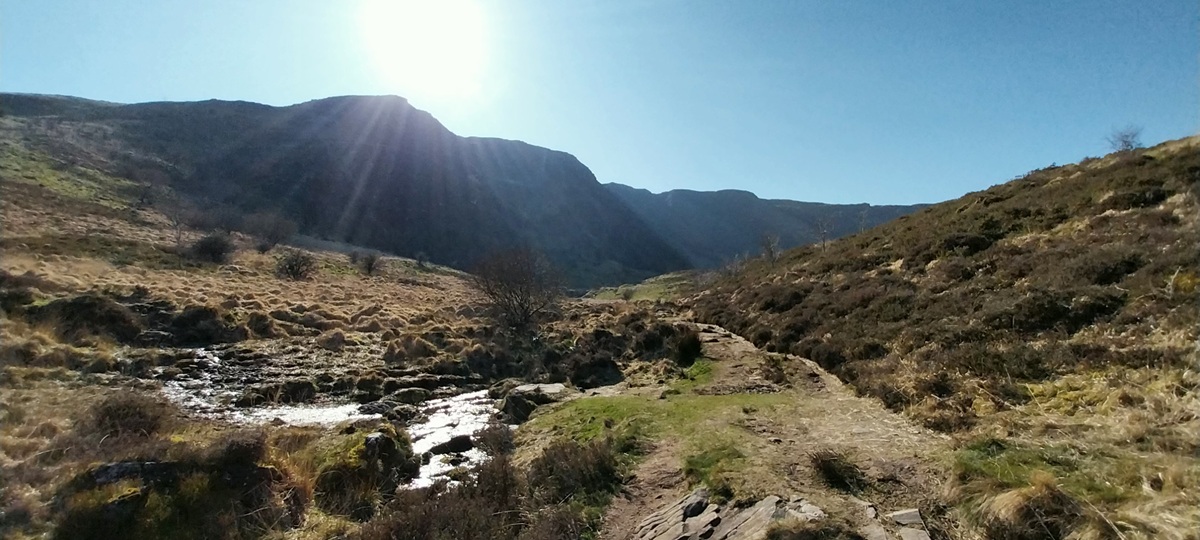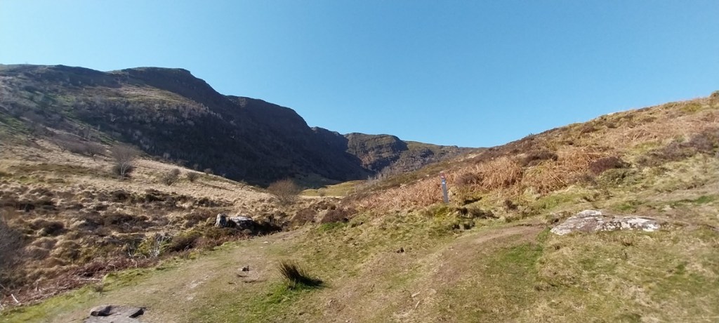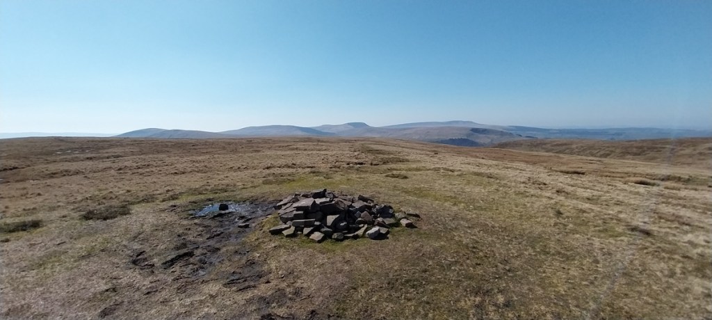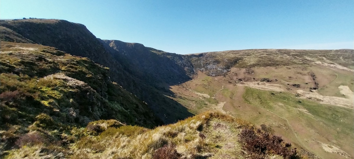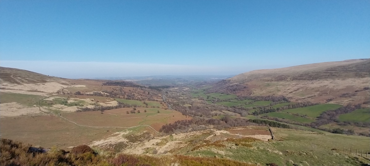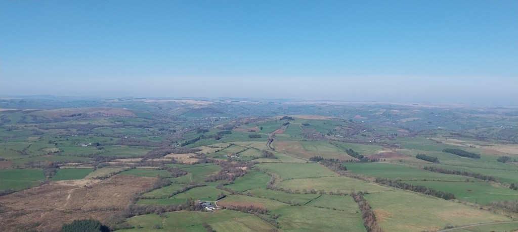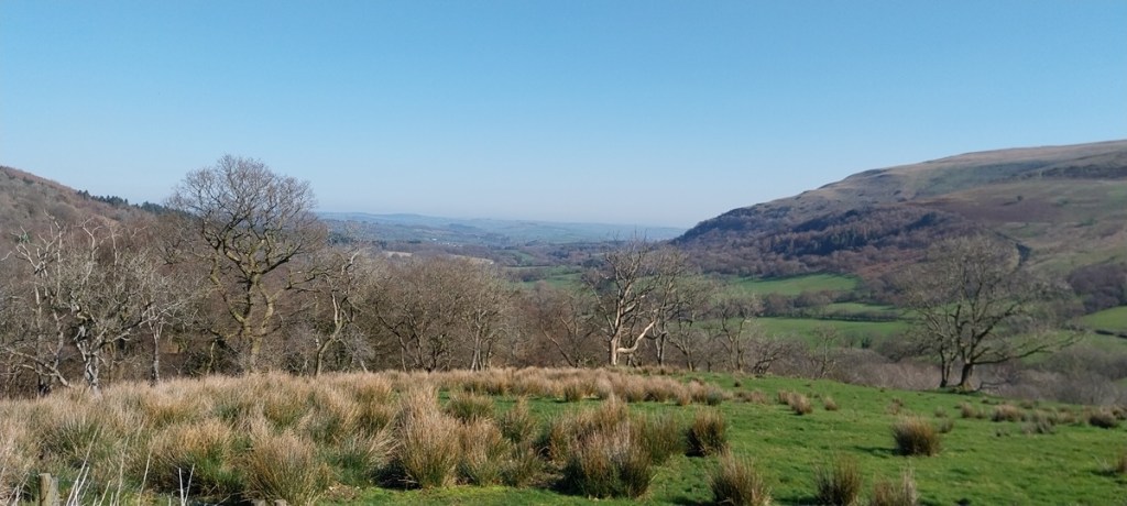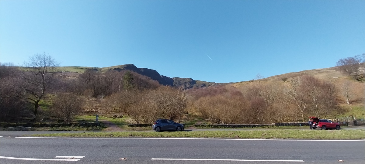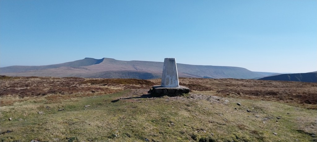 This was walk number 2 of our visit to the Brecons this year and this one was one I’d see recommended on lots of websites (a bit like walk 1 around the 4 Waterfalls). Again this was a short distance of barely 4 miles, we weren’t in a rush to get round so took our time and the weather was superb for March, meaning just a t shirt needed! Parking up on the A470, north of the Storey Arms Centre, there are few clues as to what might be in store. Only the top of Craig Cerrig Gleisiad is in view from the layby, but it bowl shape gives a clue. We booted up and headed off up the simple short path through the woodlands which would deposit us near to the bowl, but not quite at it. To keep the surprise longer we turned right and followed a delightful path traversing the slopes, to the point on the Twyn Dylluan-ddu ridge where the climb up Fan Frynych is easier. A sharp left turn here opened up the views into Mid-Wales, although the haze restricted some of the views a little. It was clear that we were climbing and the views would get better that way as we reached Fan Frynych, we also had some restricted views into the cwm of Craig Cerrig Gleisiad, but they could wait a little longer. Fan Frynych was first and a lunch stop needed looking north, if only to allow the group of male summit hoggers to move on, so I could take a photo. Before long we were looking down into the cwm and summitting Craig Cerrig Gleisiad, a small pile of stones marking the top. All that was left was a thigh burning descent down to the wooded path and the car. A superb little walk and on a day like this why rush around.