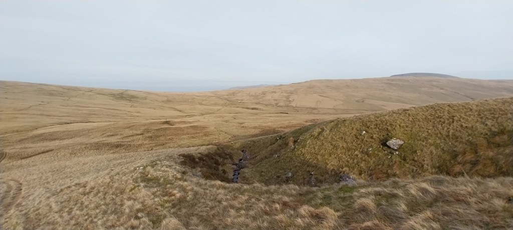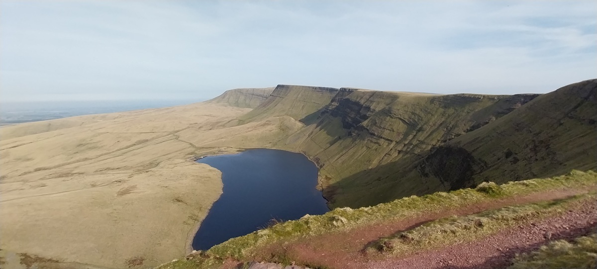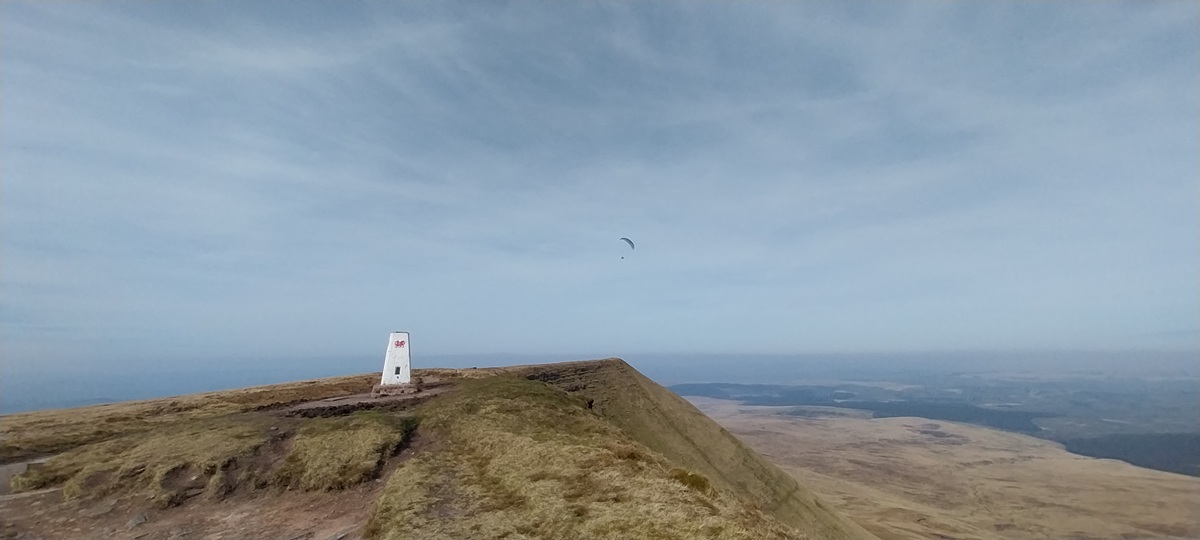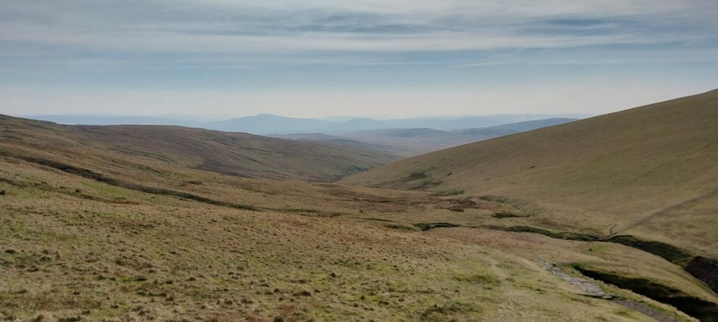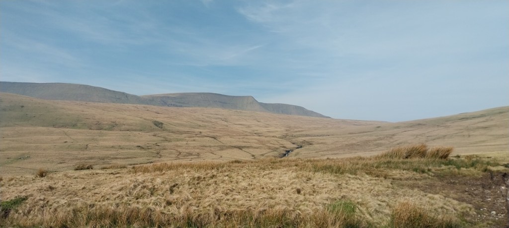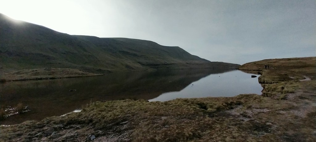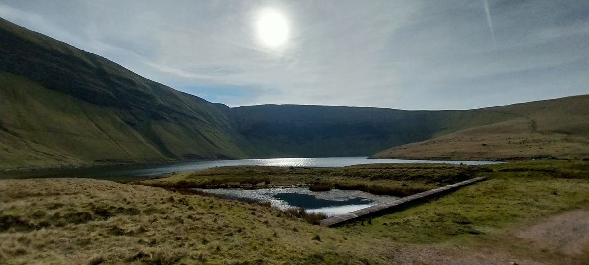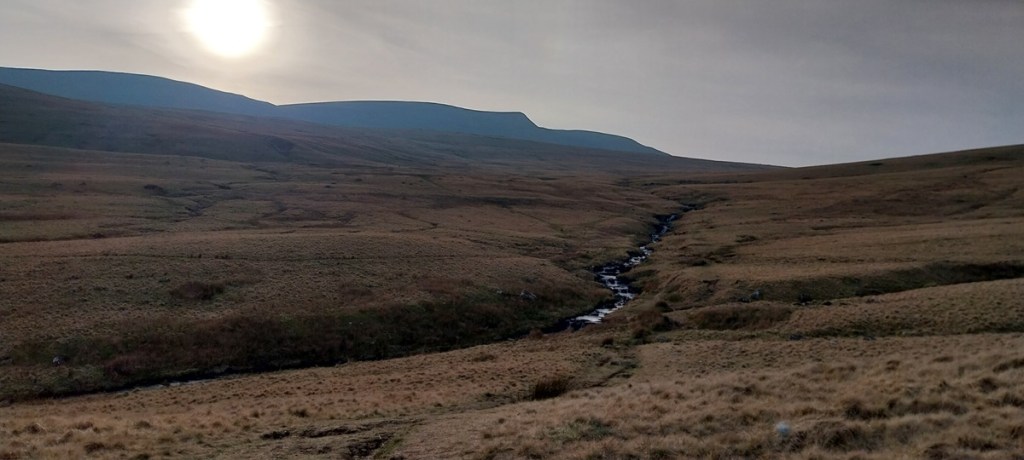 I’ve had this walk in mind for the last 3 years and finally I pulled the car into some roadside parking and looked across the yellowy grass towards the high ridge that held Llyn y Fan Fawr beneath it. It was worth the wait. The weather was again, unbelievably kind to us. Apart from hazy distance views, we had sunshine, light winds and t-shirt walking weather. The only real trouble was the start and end over boggy ground, but we are used to that on Dartmoor. We set off and headed for Llyn y Fan Fawr, stopping about 3/4s of the way up for a coffee. I’m not sure we picked the right route of less or more boggy ground but we arrived in good time and quickly set about the main climb of the day, to Fan Brycheiniog, which at 802 metres would be the high point of the day. Once at height we turned right for the trig point, all the time looking back at the views and the duo setting up their hand gliders. Just as we reached the trig point, one of the duo serenely passed us, turning at Fan Foel to go back along the face of the ridge. We carried on to Fan Foel, catching our first views to Picws Du and Llyn y Fan Fach as we arrived at the cairn. It was approaching lunch time so we found a spot giving us a good view west to Llyn y Fan Fach and the next couple of hours of our walk. Full up we set off first for Picws Du and then the top overlooking Llyn y Fan Fach, called Bannau Sir Gaer. We dropped down to the Llyn, crossing the dam and following a leat for a short section to the Afon Sychlwch and the dam there, it was time for another coffee stop and time for a biscuit or 3. We had a decision to make here, either we follow the Beacons Way which hugs the base of the ridge we had just walked, or cut directly across the hillside for the base of Fan Foel. The latter option won out, and the path was a good one grassy and not boggy, giving us some good views to the steep slopes above. This bit took longer than I expected, and we climbed up to the Beacons Way a bit tired, so we planned another stop as we rounded the corner heading back to Llyn y Fan Fawr. We looked out towards Mid Wales with the Usk Reservoir in view, as we enjoyed a leisurely stop off, enjoying the light as the sun turned towards the golden hour. We quickly made the Llyn again and started off dropping down towards the car, we started off on a different route but soon joined our outward path and made the car. Delighted with our walk and relieved to finally make it here. All that was needed was a pub stop off for a celebration pint, the plan was The Ancient Briton, apparently the Wales pub of the year in 2025 (according to the sign outside) but the world, his wife and hamster was turning up at 5pm, so we did a quick about turn for the Penycae Inn a mile or so back up the road and enjoyed a nice pint in a busy but not rammed pub. A fine end to a great day, the next day would be another walk and an epic.
