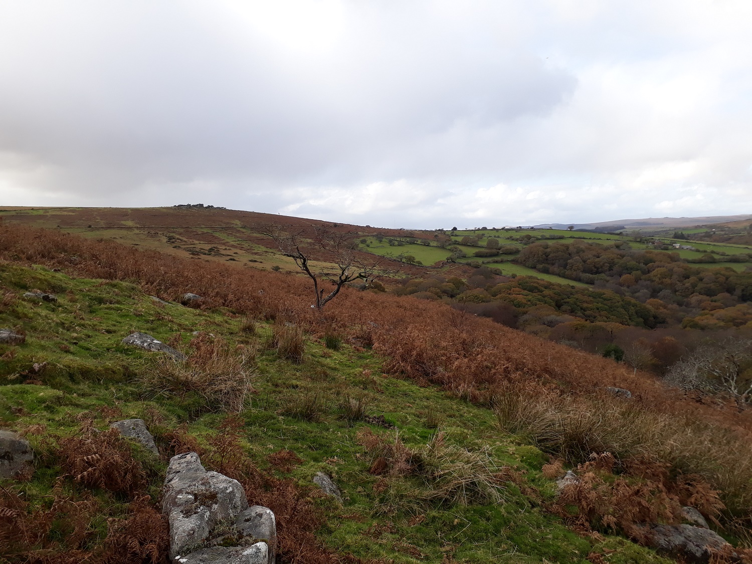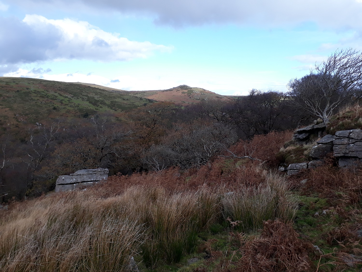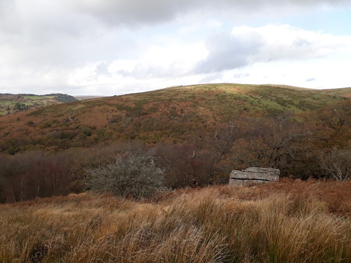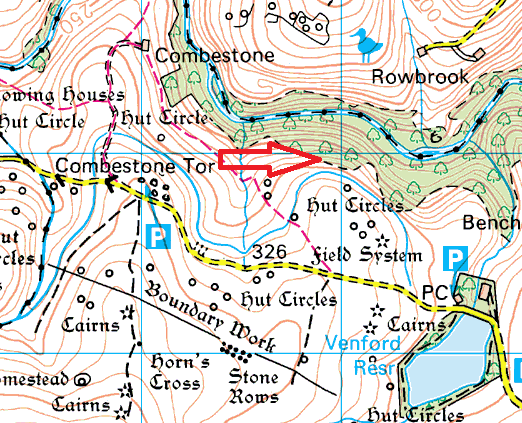 This is a small scattering of rocks sitting above the Holne Woods and the River Dart, opposite to Vag Hill. It is a short walk away from Venford Reservoir which sits to the south east. The views across to Combestone Tor are good as are those over the Dart valley to Vag Hill. The ground behind the outcrop rises and to the south there is very little in the way of a view. The easiest way to get here is from Venford Reservoir and following the Aller Brook which runs about 50 metres above Aller Brook Outcrop.