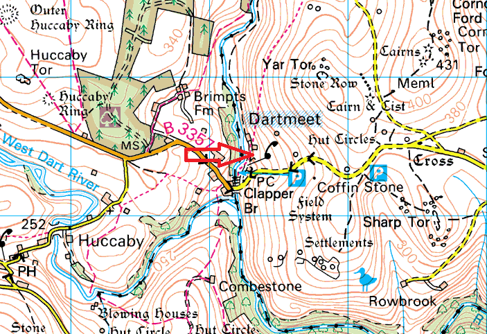 This is a couple of small outcrops sat near to the Badgers Holt tearooms at Dartmeet. There is a footpath that runs to the right of the tea room gate and just beside a cottage you will find Badgers Holt. There isn’t much of a view from here, being in the trees and to be honest parking in the car park will give you a walk of about 30 metres to this one, making it the easiest tor to reach!! There’s a second outcrop the other side of the cottage but that’s about it for this tor. There are no military areas near here.