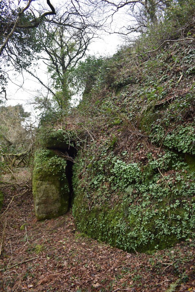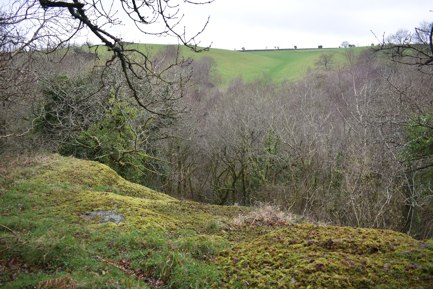 The rock sits on the eastern side of Beadon Lane, which is the lane running between Tottiford reservoir and Hennock village. As you climb away from Beadon Brook towards Hennock you will see this outcrop on your left in an area recently cleared of trees. The outcrop is heavily covered with greenery but you can see the size of the rocks as parts are still exposed. There are some good views across to the west to the fields beyond the road, at least for now as there have been more trees planted.There are no military ranges near here.