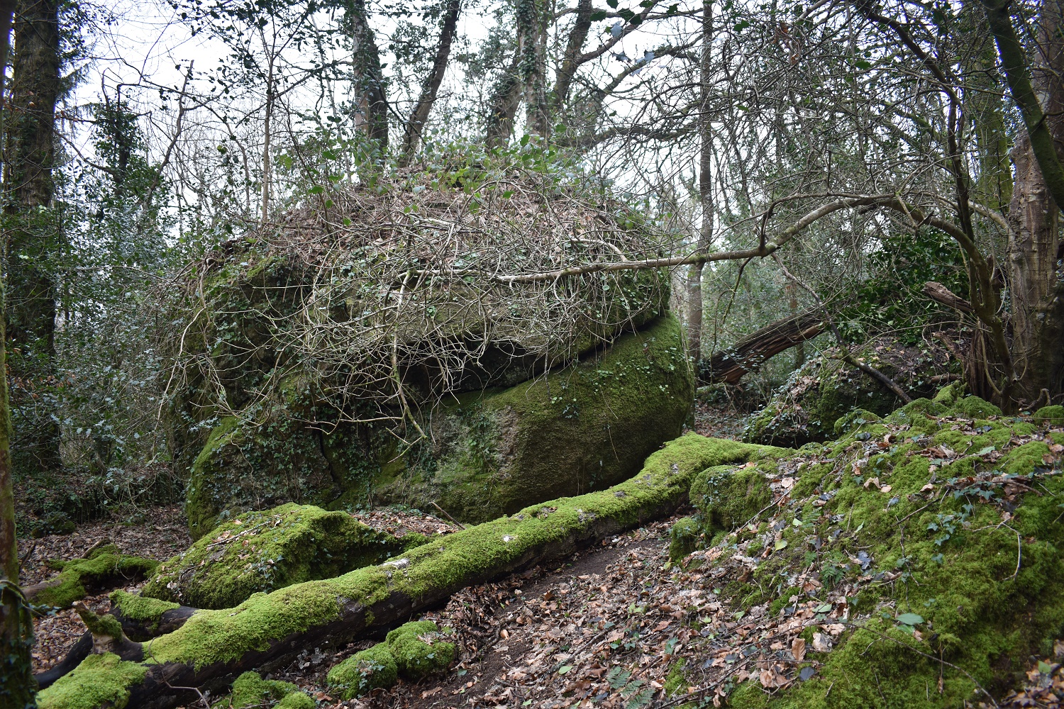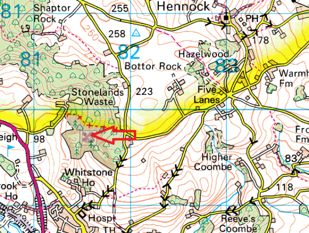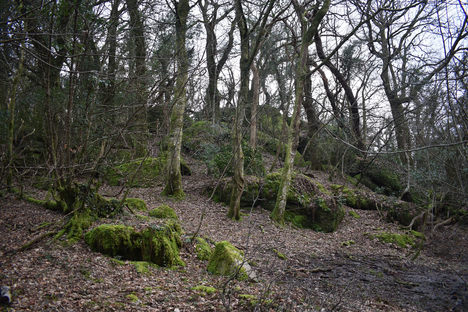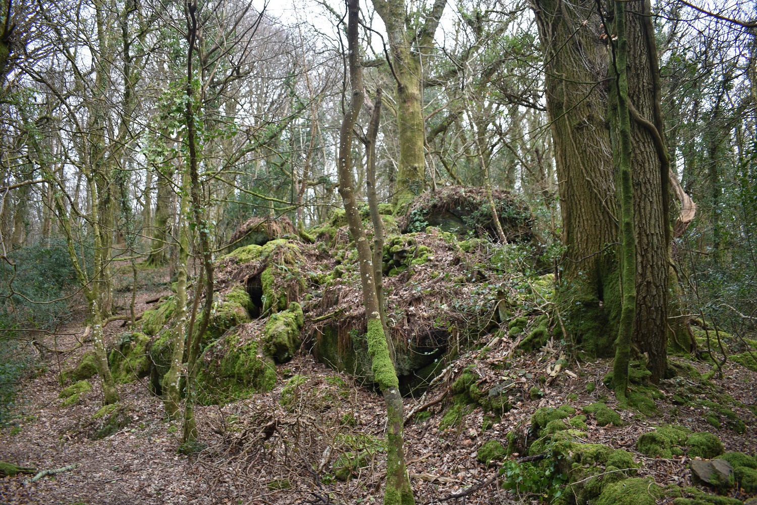 This isn’t so much, one tor. But a number of outcrops which I have lumped together. You could easily have 3 or more tors here, but I’ve included them together in the same way as Beardown Tors in one tor. The outcrops are varied, with some large rocks stacked up, some scattered clitter and rocks and other solo rocks. These outcrops are within Bearacleave Wood to the south of John Canns Lane and also lie outside the national park boundary. But like those of Whitehill Tor and Crownhill Tor I feel they are worthy of this inclusion. Being in woods there are no views and also no firing ranges near here.