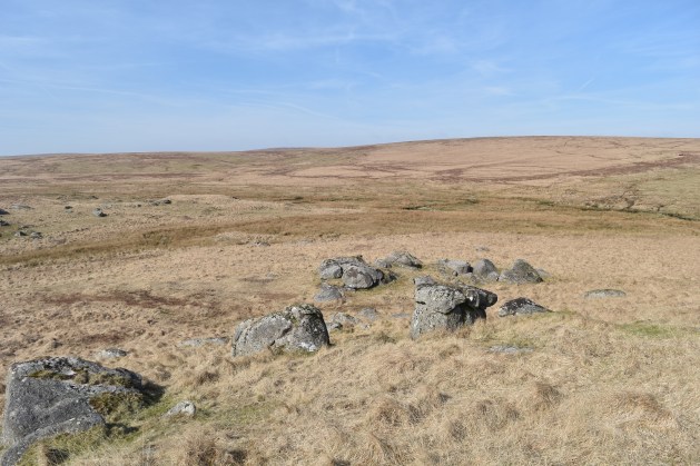 The Broada Stones are a small gathering of rocks at the northern entrance to Sandy Hole Pass beside the East Dart river. These rocks seem to sit both sides of a small stream which runs into the river. The views across Broad Marsh are good and also up to Winney’s Down, and there is Cut Hill to the north west from this spot also. The easiest way here is to follow the path to the East Dart Waterfall, carrying on through Sandy Hole to the Broada Stones. These rocks don’t sit in a military firing area although the Merrivale zone is a short distance to the west, so beware if heading that way.