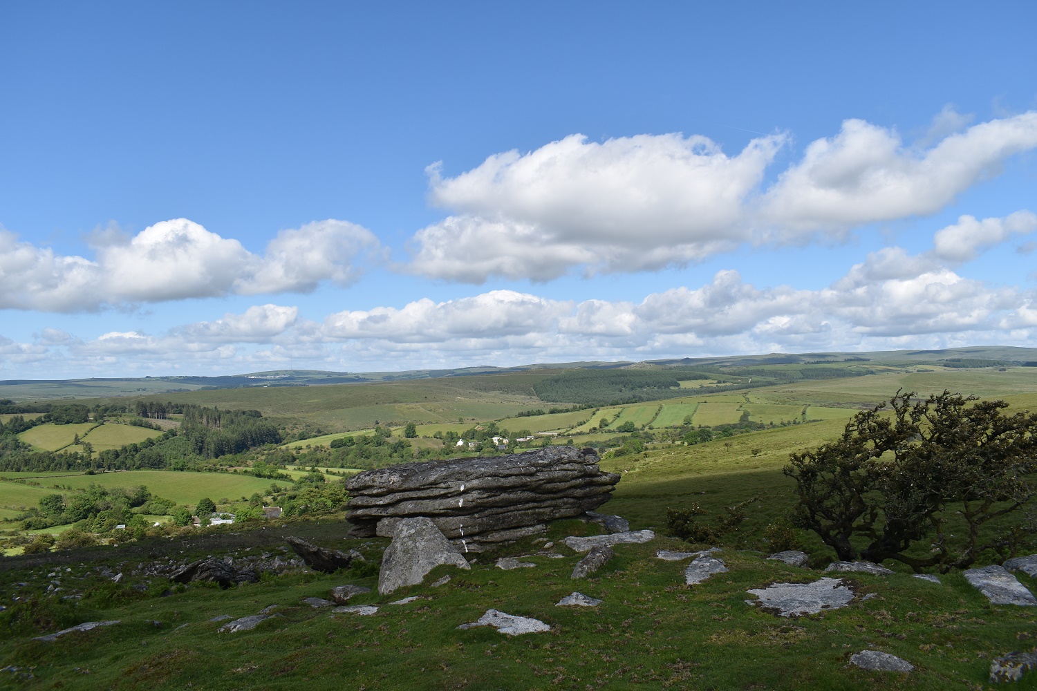 This is an outcrop sitting on the western side of Corndon Down as it descends towards the hamlet of Sherwell. Its a fine outcrop with some amazing views to the north towards Cut Hill with the Princetown mast easily in view to the west. The amount of clitter below this rock would suggest it was much larger previously, suggesting that it should perhaps of had a ‘tor’ title. The easiest way to this rock is to park beside the Cave Penney memorial, and walk out along Corndon Down to the outcrop. There are no military ranges near here.
