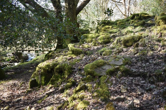 This is a small outcrop of rocks at a very obvious point on Dartmoor. Chalk Ford is a well known entrance onto the south moor, especially if you are walking out from Scorriton towards Pupers Hill, or even more popular is the fact it is part of the Two Moors Way. The rocks at this section are quite well hidden and tumble down the bank to the River Mardle below. The best outcrop is on the southern bank about 70 metres from the bridge, but in truth there are rocks down by the river just down from the bridge as well. There are no views nor firing ranges here.
