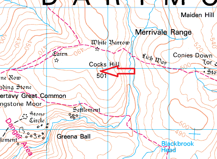 Cocks Hill is a fairly boring, flat, characterless hill sitting near Langstone Moor, the River Walkham and the Lych Way. It is also pretty boggy, I visited in June and it was boggy, I wouldn’t be coming here in winter unless it was frozen! There are hardly any paths to the hill so the best angle to come in from is the Lych way, heading off from White Barrow on the maps. Cocks Hill is within the Merrivale Firing Range so obey the notices, and tell the army they are welcome to it!!