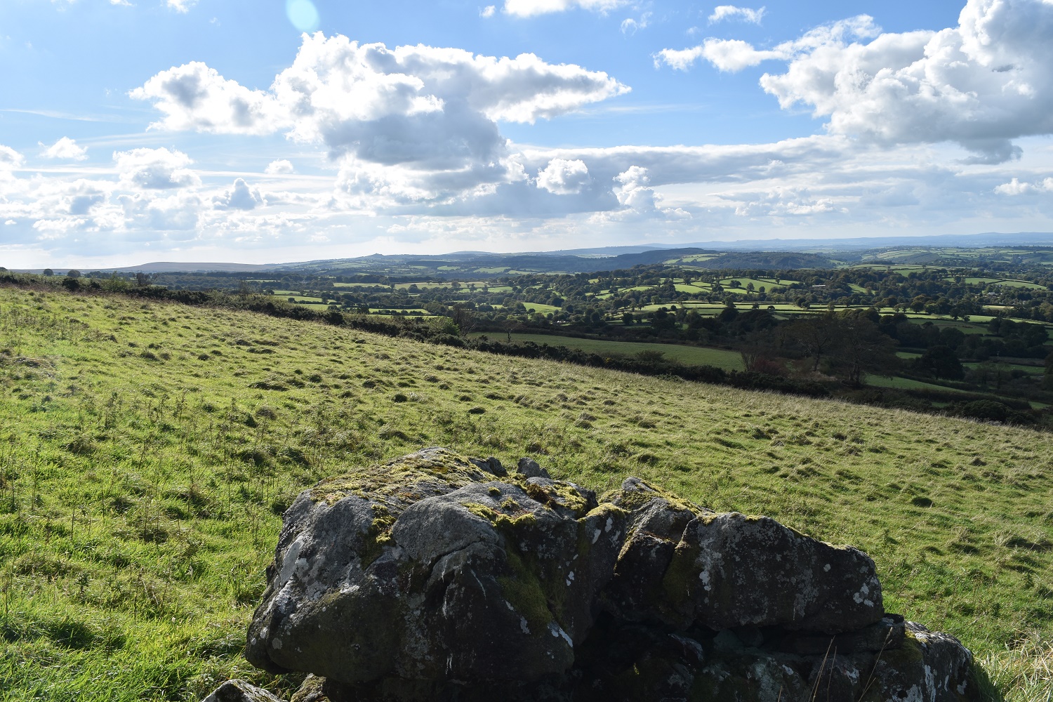 From the lower part of East Tor (the bit just over the wall) looking west across the fields of Devon