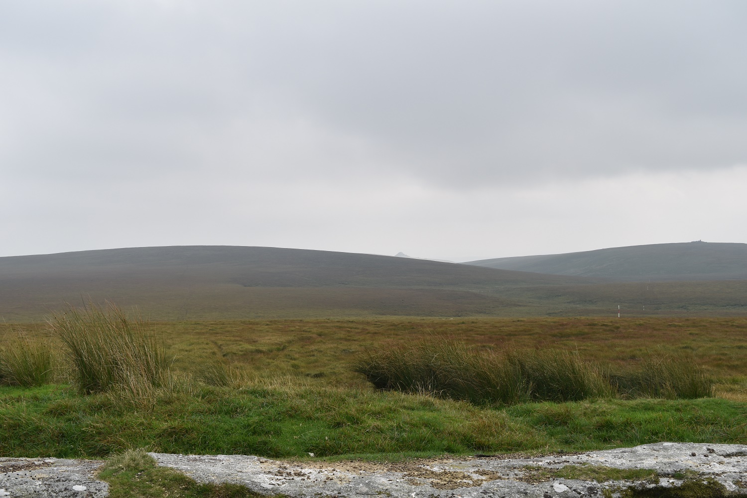 This one does as it says on the tin. It’s flat!! The area around it is fairly flat as well. As a result there are a number of river heads around these parts making a walk here an attritional affair. This doesn’t mean that its not very high, far from it. You are well over 500 metres up here, however the land around is all above that as well. The summit is quite small and you might wonder why you’ve bothered but the solitude level here is about as good as you’ll get on Dartmoor. The views are okay from this tor, across the mires towards Rough Tor and to the north is Cut Hill. Sandy Hole Pass can also be seen with Winney’s Down beyond. Flat Tor sits right on the edge of the Merrivale firing range (the posts pass through it) and any red flags will be seen on Rough Tor. So obey any warnings. To get here you have two options, either follow the East Dart river, past the waterfall and Sandy Hole Pass, then head left and up to it. The other is over Higher White Tor and past Tom Brown’s House, over Wildbanks Hill and across the soggy bit!!