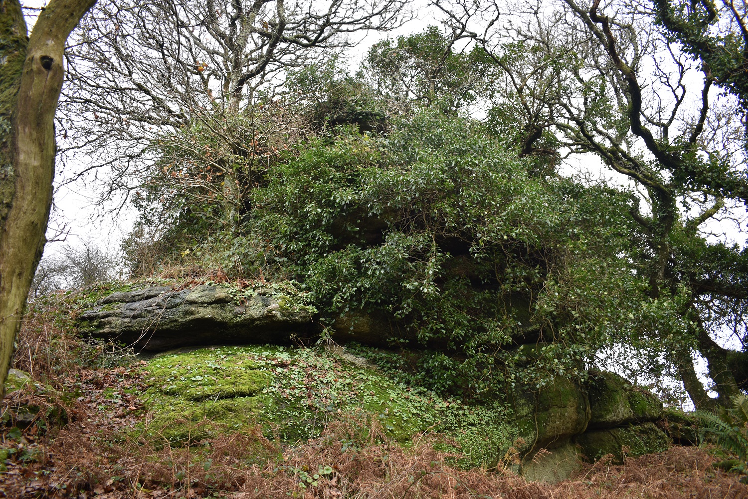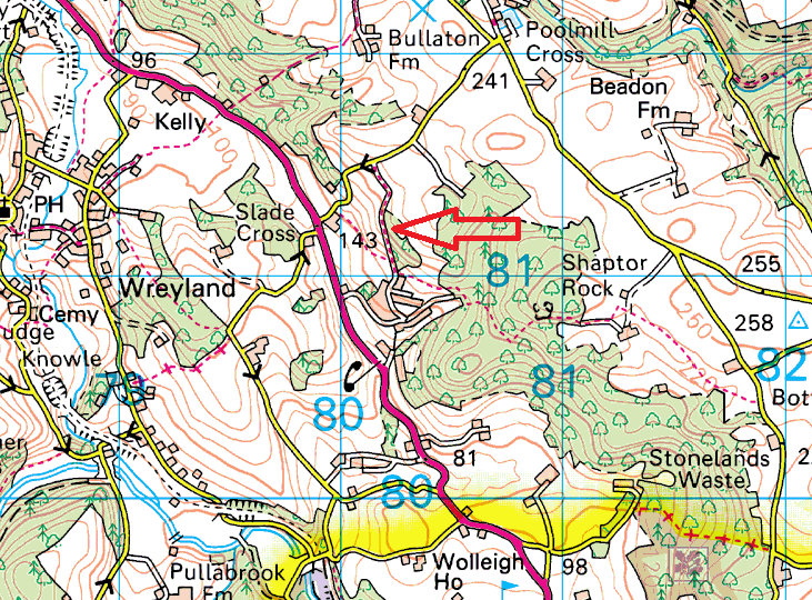 Gladstone Rock is within woodland to the west of Hennock on the eastern side of Dartmoor. A good path leads from the lane ( I believe its called Bell Lane) into Shaptor Woods, before you reach Shaptor Woods however Gladstone Rock is off up to the left of the path a few hundred metres after leaving the tarmac and perhaps 50 metres into the start of the woods. The views are mostly hidden, and the rock itself is pretty covered with greenery, with a tree growing from the top. There are no military areas near here.