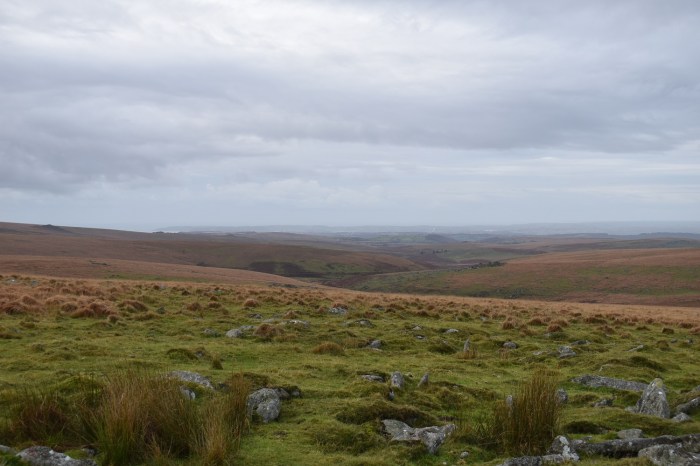 Great Gnats Head is not a tor as such but a large cairn and hill with plenty of scattered granite down the slope from the pile. It has good views on a clear day to Higher Hartor Tor and beyond to Plymouth Sound. Great Gnats Head sits just up the hill from Plym Ford and the source of the river Plym, which gives Plymouth its name. In my experience coming from Plym Ford and Great Gnats Head is one of the better and drier routes to Ducks Pool. No military firing areas around Great Gnats Head.
