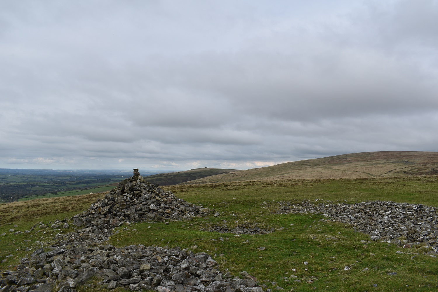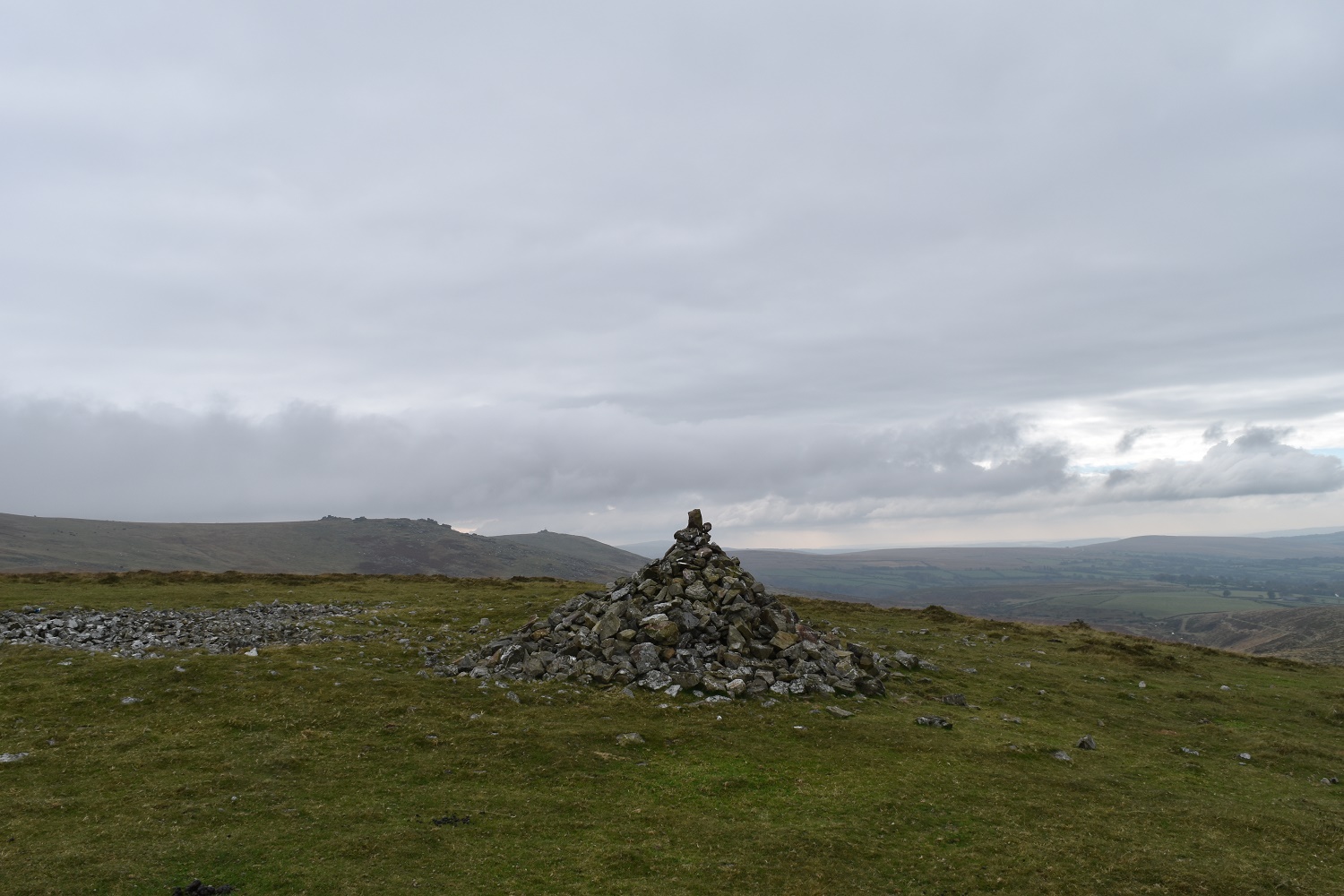 Great Nodden, or the Pudding Hill as it is known due to its shape, is a fine hill with great views. It sits separated from the rest of Dartmoor by the River Lyd and its steep sided valley. The views westwards, like all the tors along this side are far reaching, all the way to Cornwall and Kit Hill to the south west. You also get a decent view of Great Links Tor and south to Arms Tor. Great Nodden is not within any of the military firing ranges. The best approach to this hill is either from the south and Nodden Gate along the good path or from the north taking a spur off from the Rattlebrook railway.