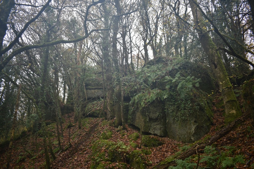 This tor sits, obviously, within the woodland of Great Warmpit, just down the hill from Castor Woods. This tor sits downhill from Lower Castor, heading across the fence from this tor in a WNW direction, you will see the wall coming down on your right, this leads you to Great Warmpit, The outcrop is fairly large, especially from below, with one large main outcrop and lots of big boulders all around, a classic woodland tor. Be careful of the ground which can be slippery here. There are no military firing ranges here.