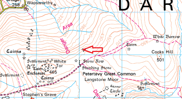 A small rocky outcrop sitting on Peter Tavy Common to the north east of White Tor. There a reasonable outcrop just off the path and also a bit more just over the wall to the west. Other than that there’s not really much here to keep the tor hunter happy, but at least this one has a great view out towards Brent Tor and Cornwall. There is a good path up from Boulters Tor to get here, which bypasses White Tor. This tor lies within the Merrivale firing range so look out for red flags flying on White Tor before going to this one.