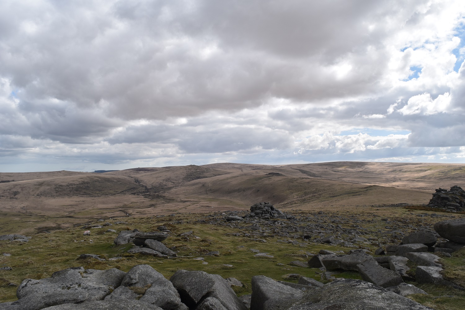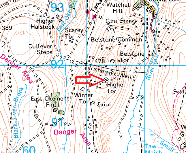 Higher Tor is a very large, vastly spread area of clitter, outcrops and enormous stacks of granite. This has to be one of the most impressive areas on the moor for granite rock. This tor sits very close to its more illustrious neighbour, Belstone Tor and can be mistaken for one huge tor all in one. Higher Tor is also split in two itself with Higher and Lower parts being named on some maps. The views are vast, from Cosdon Hill in the east, right round to Yes Tor in the west. A great place. This tor also sits on the edge of the Okehampton army range so obey the red flags warnings when they are up, the easiest approach from Belstone village will take you past the flag pole on Watchet Hill to warn you.