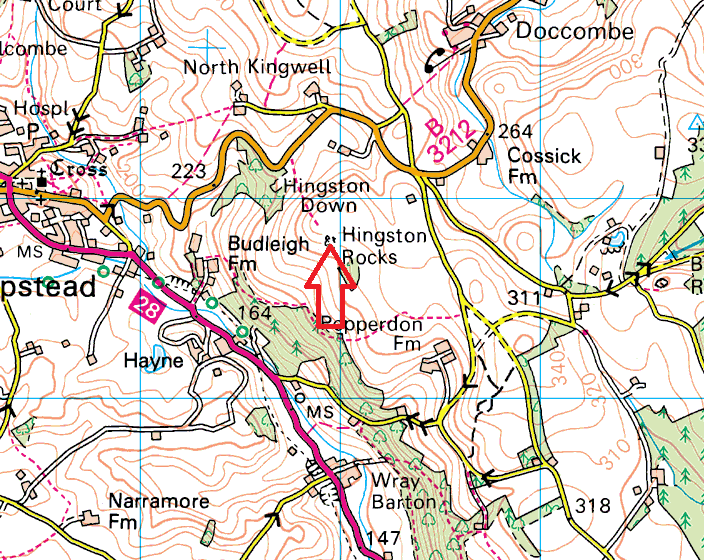 This set of rocks sits to the east of Moretonhampstead on the eastern side of Dartmoor. Its a tricky spot to get to, as farmland surrounds all the ways in to this one. Thankfully there is one footpath, from the north which is the way in and out to this outcrop. Parking is pretty much impossible along the B3212 so you may need to park further afield and walk to this one, although when I did it I managed to get in on the roadside a bit further east. There is parking at Mardon Down and a footpath across fields to the B3212. The footpath to get to Hingston Rocks starts at a very inconspicuous stile and a fingerpost if it is in situ, then across some stones before a signpost marks the way through a gate. Follow the marker posts uphill through the bracken (come in winter or early spring for this one) and up to the rocks. The views down to Moretonhampstead are brilliant with Dartmoor proper beyond to the west. This is a good walk for a dreary day and can be added as a single quick walk alongside that of Heltor Rock and Blackingstone Rock. There are no military areas this far east.