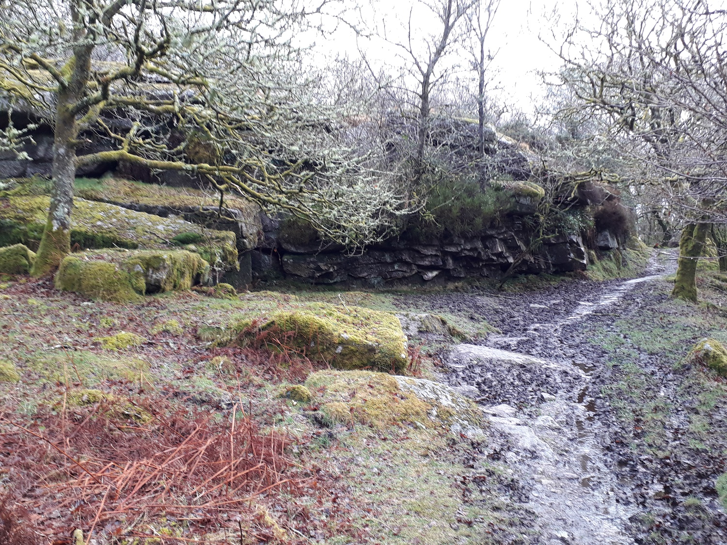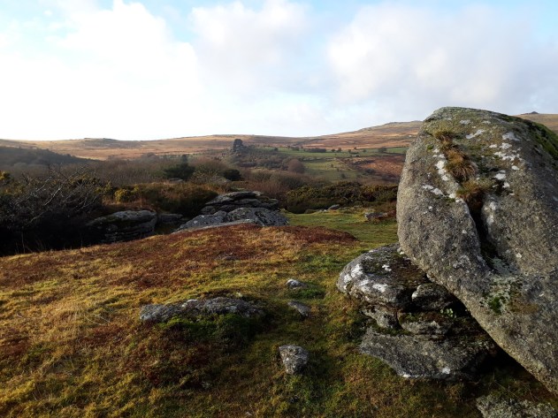 Hucken Tor is a small tor with most of it hidden in the trees to the south of Merrivale village. Its a fairly easy walk to get there, starting at the Dartmoor Inn in Merrivale and heading along the lane through the trees to the south. Once across the bridge its a simple ascent up through the trees and gate to the tor, with a surprising amount of rock within the trees below. Popping out the top on a small flat rock gives great views to the west over Pew Tor to Cornwall and to the north lies Great Mis Tor. There are no military ranges around this tor.