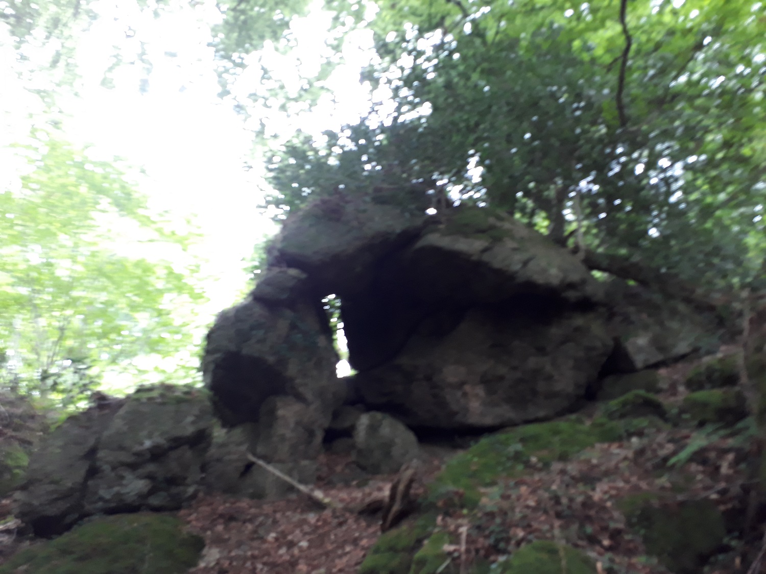 This is a gathering of rocks on the southern edge pf Shaptor Woods in eastern Dartmoor. There is a clear by way that passes through the woods passing this outcrop. If you are heading downhill you will see John Canns Rock on your left, sitting right on the National Park boundary. You will know you are there as the banks of the path rise to above head height around the rock. There aren’t any views due to the tree cover and no military areas either.