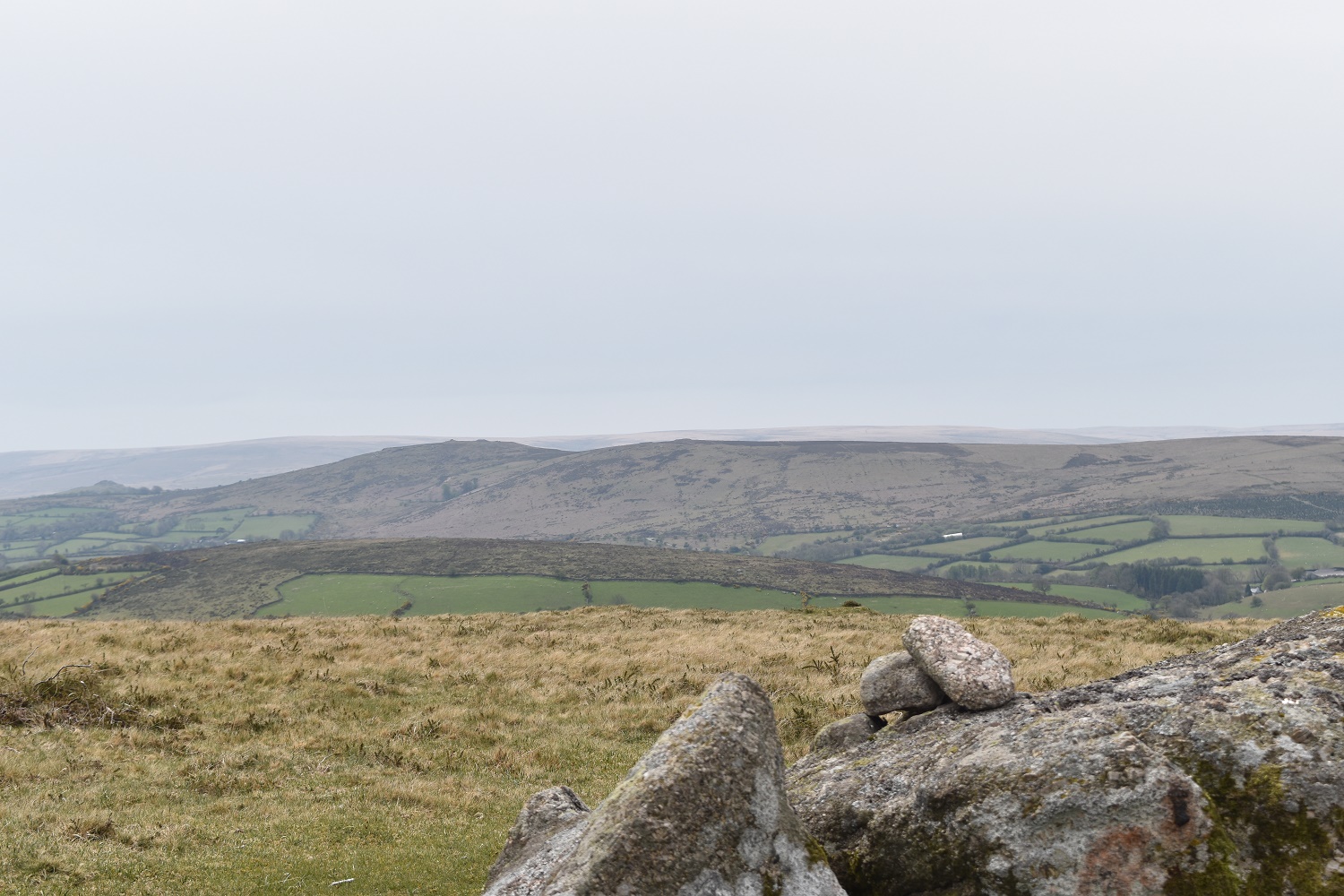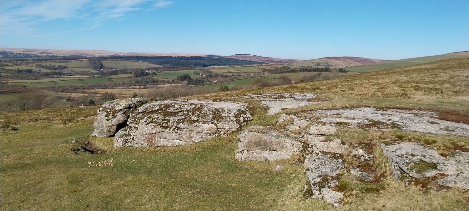 Langworthy Tor is a pretty small outcrop of rocks, some low lying on the south western side of Hameldown. The location is reasonably well spread out and the summit can be tricky to find as its not easily seen from the Two Moors Way path, it easier to see it from the Langworthy Farm direction. The views to the south and west are very good, across Rowden Tor to Corndon and beyond to Ryders Hill and Snowdon. The easiest route is from the Wind Tor direction as there are a number of parking spots on the road there. No military firing areas near here.