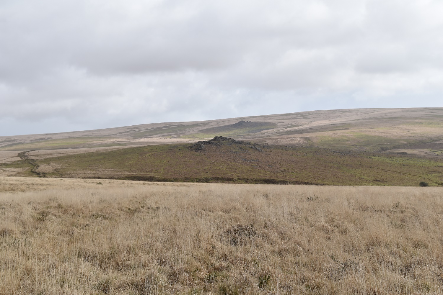 Pointy Hen Tor with Lee Moor behind from Legis Tor