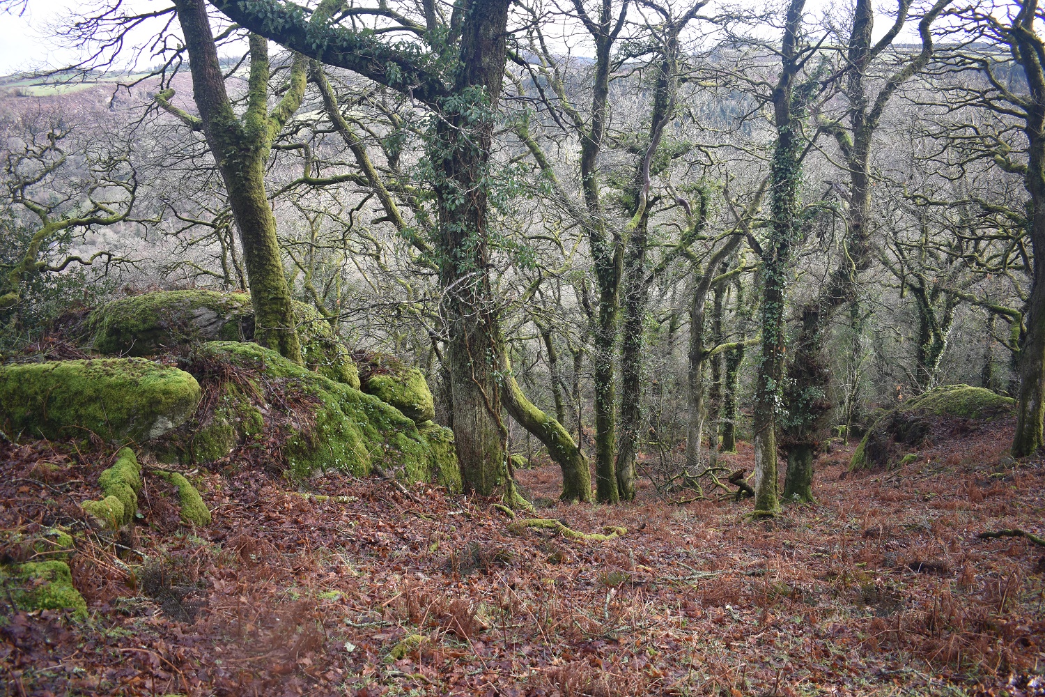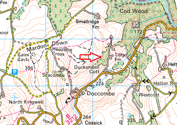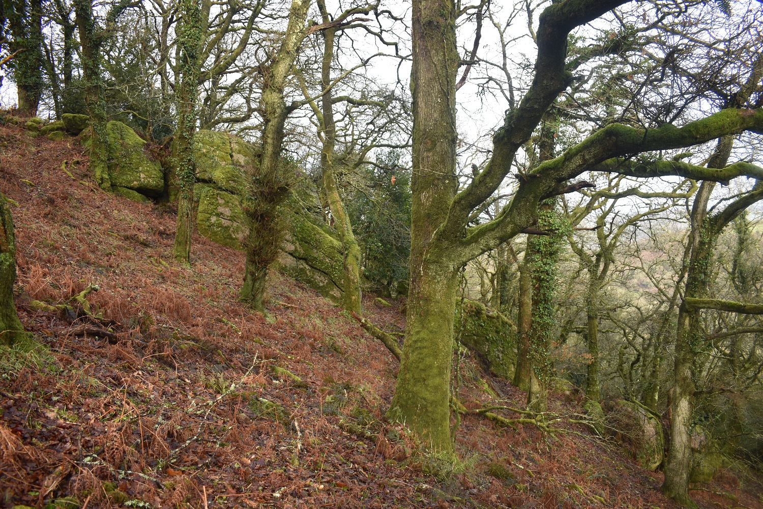This is a decent sized tor, set within woodland, above Leign Farm. In fact you can see some of the farm buildings below you from this outcrop as well as a peek through to Heltor Rock in the winter, when the leaves are absent. This tor can be a tricky one to get to with two possible approaches. The first is from above, were a metal gate gives access to an open area, covered in gorse, bracken and bramble, there is a narrow path following the path down the hill, handrailing the wall to the trees, just as you enter the tor is below you. Through a broken gate to the left, just inside the trees, is a grassy track which leads to a tarmac path above Leign Farm, this is the second way in. There are no firing areas near here.
