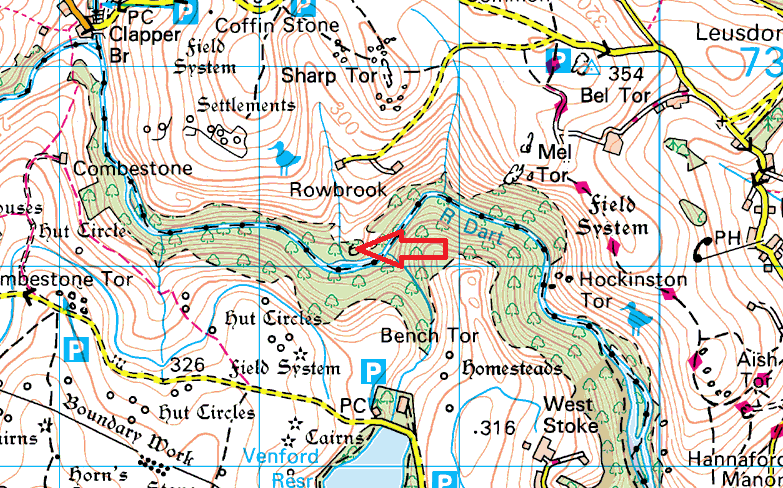 Down by the banks of the River Dart, in the gorge as the river leaves Dartmeet and wriggles its way past Mel Tor and Buckland Beacon can be found a tor in perfect seclusion. It takes a bit of a walk to get here and the best route is from Dartmeet or down from Sharp Tor above. There is a nice clearing around the tor making a perfect spot for a brew. The outcrop itself is fairly big and rises upwards making a fair climb to reach the top if you are coming from the river side. There are no military ranges near here.