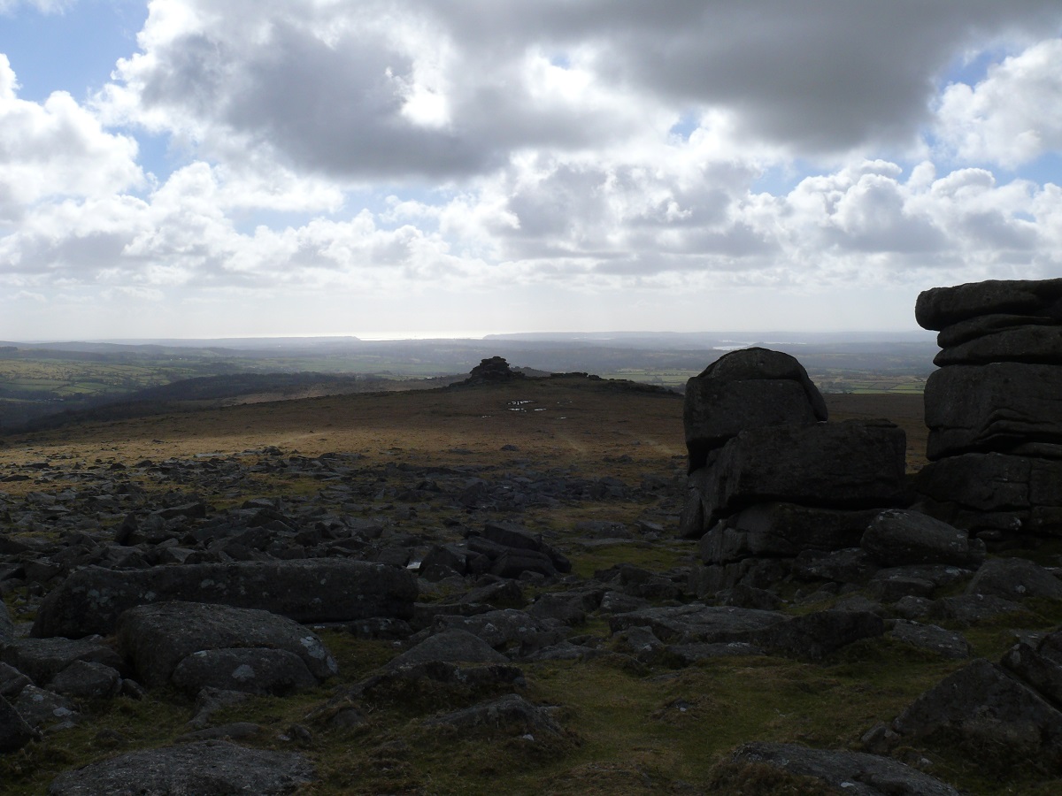 Middle Staple Tor, almost as its name suggests, is not as grand as Great Staple Tor, its summit rocks are not as spectacular. However, like nearby Cox Tor, the views to Plymouth Sound are wonderful. This is also an easy tor to get to, just a 15 minute climb from the car park at Pork Hill, where you will find some decently stacked granite. This tor does not sit within any military firing range.