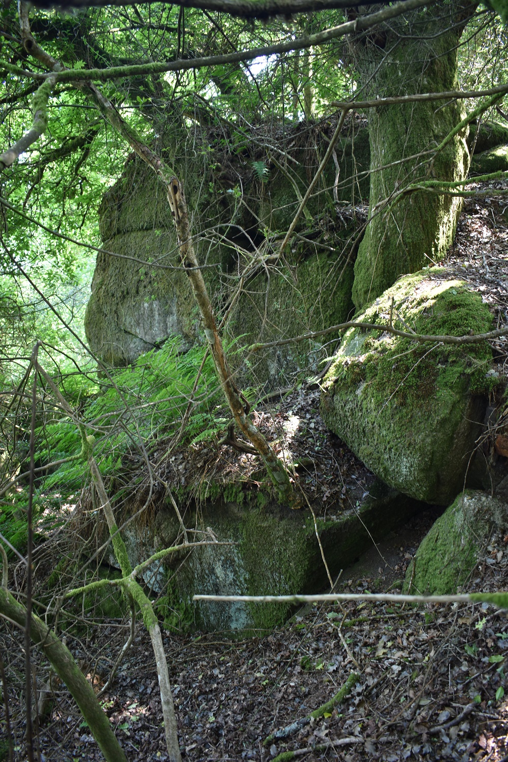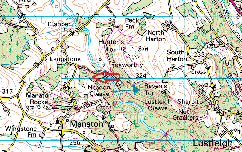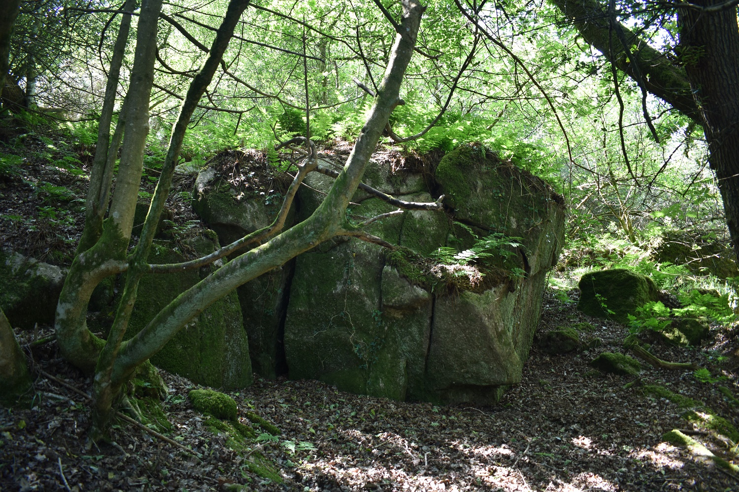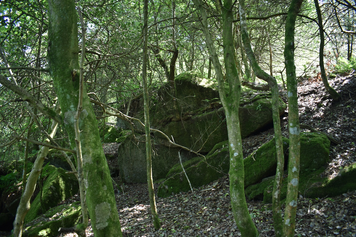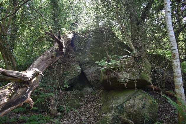 This one is a bit of a tricky one to get to, either follow the map and come along the top path, get to a point and head down through the scrub to the rocks. Or if you are heading up the driveway to Foxworthy Bridge then you will need to hop the fence and head up through the trees. The easier way is from above and work your way to the tor. Once there you will find a few scattered boulder sections, each pretty big but covered from views by the canopy.