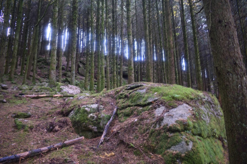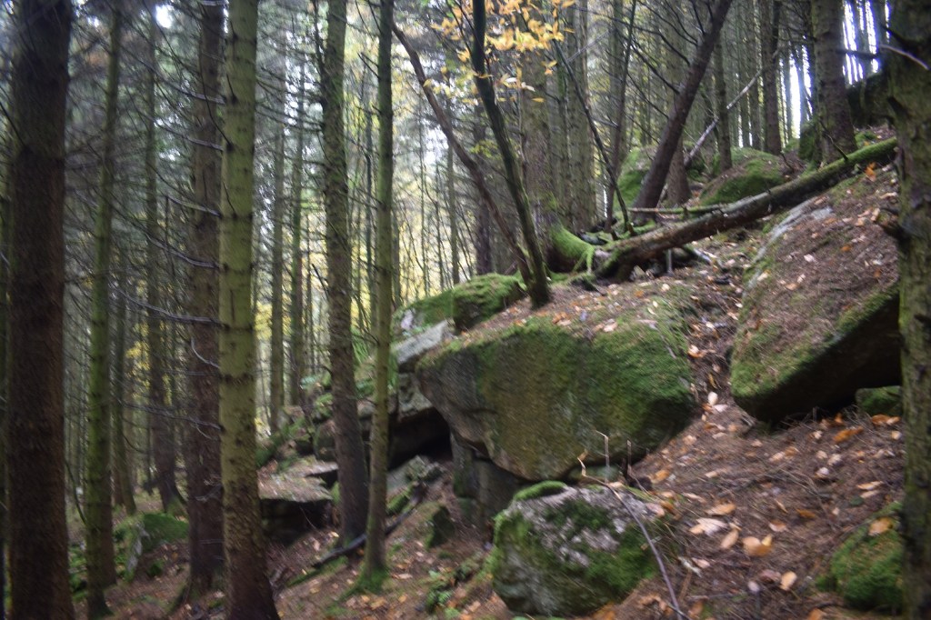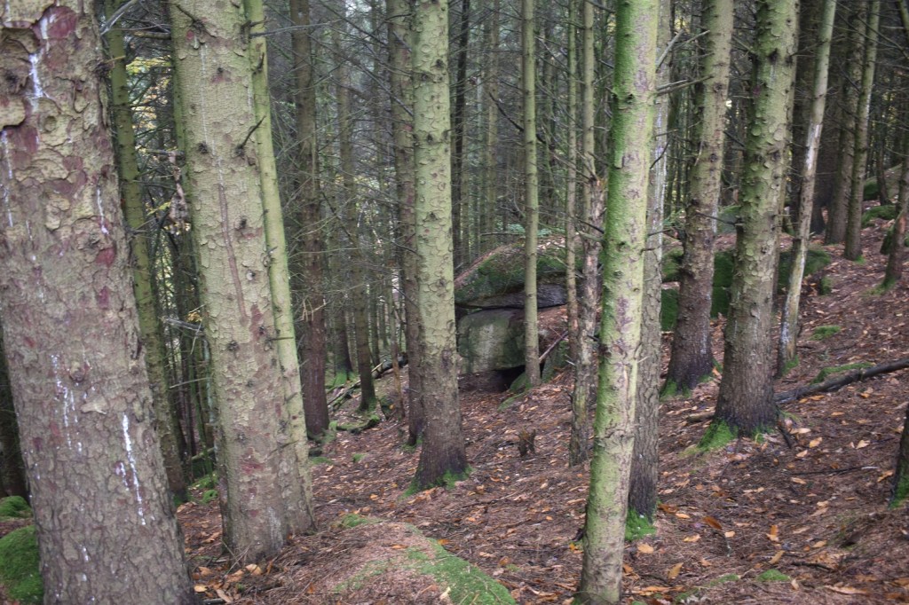 This tor sits (for now) within woodland to the east of Gidleigh Tor, on the T of Gidleigh Tor if looking at an OS map. If you approach from Gidleigh village itself and head along the track after the gate, as you enter the woods you will see the tor to your right. The outcrops are typical of a large woodland tor, similar to those in Shaptor Woods or Wray Barton. The tor spreads over a 3 or 4 outcrops, each of which are a decent size. The fir trees above make for tricky photographs, however the felling in the area suggests it won’t be long before this outcrop is open to the elements again. For now the pine needles below the feet provide a soft traverse to this tor, however the views are obscured for now.