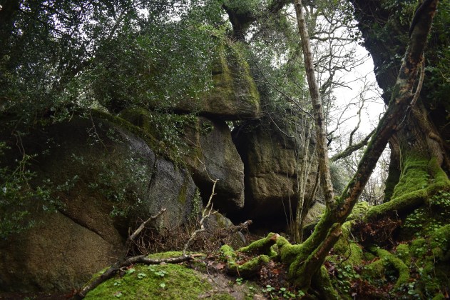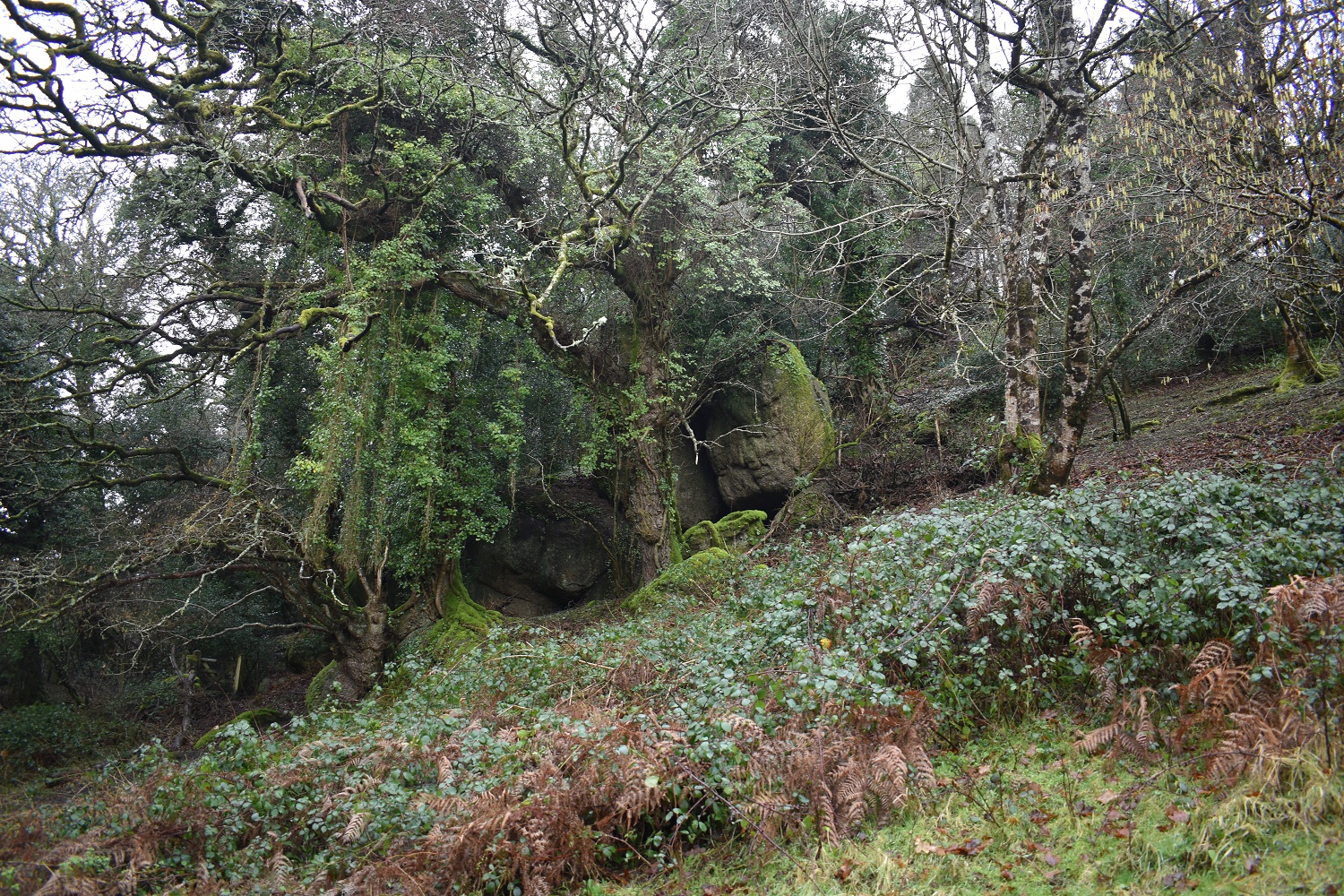 This tor sits right beside one of the many paths snaking their way out of Lustleigh to the northwest. You will pass Pathfields Tor first if you head this way to this tor, continue to follow the path towards Combe and this tor will be in the trees beside a gate up to your right, you can’t miss it. The outcrop is pretty big itself and quite compact and closed in and in summer you might not see it until you are quite close. Not much in the way of a view from here although you can get to Pathfields Tor pretty quickly as it sits about 200 metres away. There are no military ranges near here.