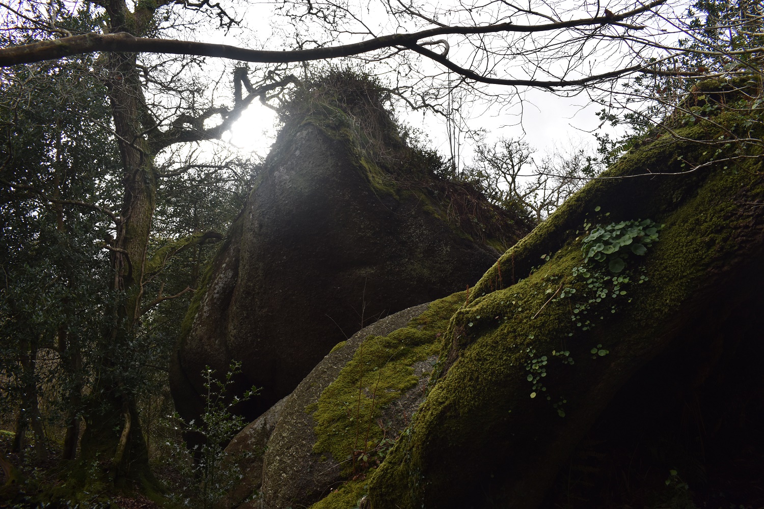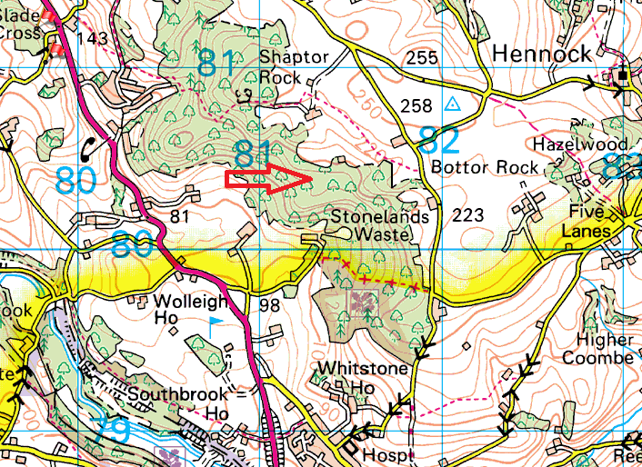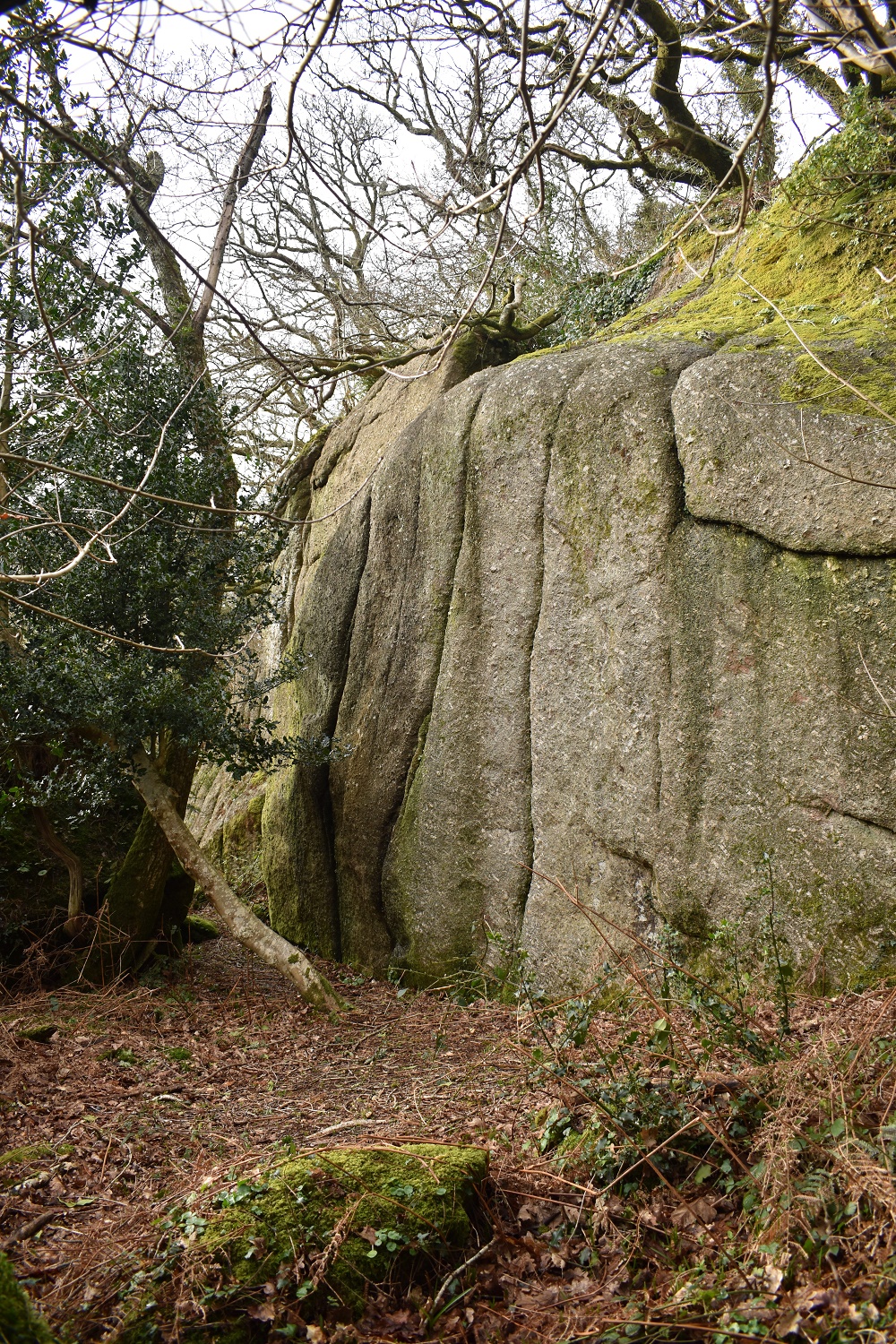 This is an absolute monster of a woodland tor. This is probably the largest of the woodland tors on Dartmoor and deserves to be talked about in the same breath as other much more lorded tors, such as Haytor, Hound Tor (Manaton) and Sheeps Tor. There are two huge white cliffs of rock here, both with plenty of outcrops around them. These outcrops would make a pretty large tor in themselves but next to the main bulk they look like pebbles. Behind each of the cliffs lies another tower of rock, marking the high point on this tor, but its the cliffs that will draw the attention. You can get on to both of them although the easterly one is a little easier. Getting on the outcrop will provide a bit of a view over the canopy, especially in winter. The main path running to or from John Canns Lane passes 40 or so metres below this tor and you should be able to see its white face gleaming at you as a few of the trees have been cleared near the rock. There are no military areas near here.
