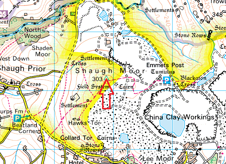 Saddlesbrough sits on Shaugh Moor above the Lee Moor Clay workings just north of Beatland Corner. If you are heading north along the road towards Cadover and get to Shaden Moor Cross, then do a 90 degree turn right and head up the hill to reach the summit. The views from the top are pretty good you can see back to Plymouth Sound in the south, with North Hessary Tor and the mast to the north. Hen Tor, Shell Top, Lee Moor are all in view as well. The biggest sight however is the Lee Moor China clay workings and from here its impossible not to see them, unfortunately! With Hawks Tor and Collard Tor also nearby you can include those in any walk up here, simple parking at Beatland Corner should give you a nice round to this walk. There are no military areas near here