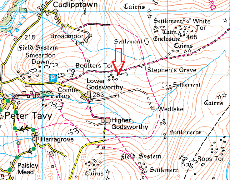 Setters Rocks is a rather small, easily missed group of rocks to the south of the path from Boulters Tor to White Tor. It sometimes has the name of Set Tor as well. The views to the west are good and you also get a good look at other bigger nearby tors, such as White Tor and Cox Tor. Nearby is Stephen’s Grave, but other than that there isn’t much to keep a walker here. The Merrivale firing range starts at nearby White Tor so be wary of firing times if heading that way.