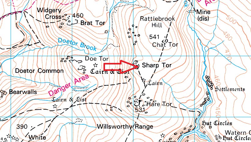 Sharp Tor is on the western edge of Dartmoor and like nearby Hare Tor, it has fabulous views in all directions, particularly to the west where Cornwall is laid out in front of you. Sharp Tor sits within the Willsworthy firing range so check firing times before heading up to this one. A good approach to Sharp Tor is from Lane End, heading up over Ger Tor and Hare Tor to this one, heading back via White Hill and the rifle ranges.