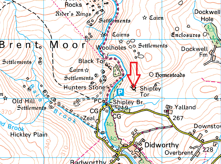 Shipley Tor seems like an easy walk due to Shipley Bridge being so close and its modest height but in fact the land below the tor to the south is private. This means a walk to the bridge upstream before doubling back to the tor. There is a small path that runs alongside the river on the eastern side and it is possible to rock hop across the Avon at the cascades if the water is low enough, or you end up walking back downstream for about 1/2 mile to the bridge that crosses the Avon. That said once on Shipley Tor you get good views across to Brent Hill and round to Western and Eastern White Barrow, whilst the River Avon can be heard below. There are no military areas near this tor.