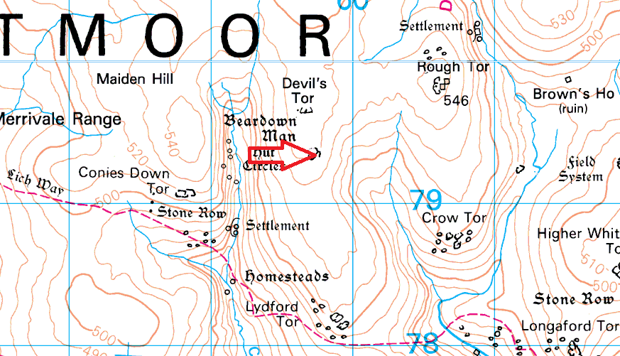 This is a reasonable outcrop, a few hundred metres to the south, of the main Devils Tor and Beardown Man. The outcrop sits in a line between Devils Tor and Lydford Tor and is easily found if on this route. The outcrop itself is actually more substantial than Devils Tor, and has some granite that rises out of the ground. The views here are vast, like Devils Tor up the hill, they are 360, especially to the south where the West Dart valley looks superb, with the bookends of Beardown Tor and Longaford Tor either side. This tor is right bang in the middle of the Merrivale firing range so obey the warnings and firing times if looking to venture here.