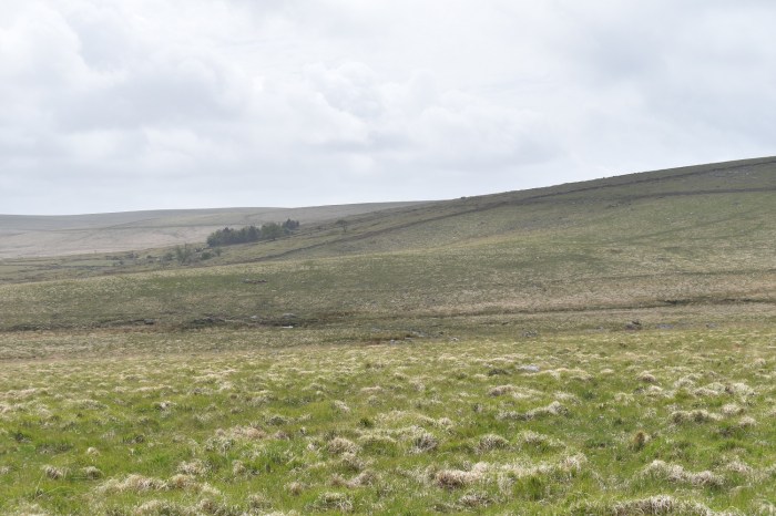 This is a pretty small outcrop by the River Strane (not much of a river really but it has that name on the map) which is a short distance off the path as it leaves Whiteworks heading towards Swincombe Farm. The outcrop isn’t big but its not far from the path so can be seen easily, the main rock has a tufty grassy hat on top to help you identify it. There are some bigger rocks across the river on the southern bank, to the south west of this tor which could be part of the tor or mistaken for it. The views from here are ok back to Whiteworks and over Fox Tor Mires but to be honest there’s nothing here to hold a walker.