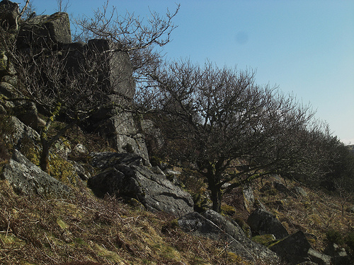 This is a tor that sits a fair way down the hill into the Dart Valley. The hill in question is unnamed on an OS map, its called Vag Hill obviously, but sits to the west of Sharp Tor (Dartmeet) and the tor itself is to the south of the settlements on that hill. If you park in the car park below Yar Tor on the Dartmeet road, head over the hill for the settlements, you will pick up a broken down mounded wall that runs north to south. Follow that until its end but keep heading on the same bearing. At the co-ordinates below you will see a depression with tor rocks on top, that is the tor, although its easier to see it from below. There are no military firing areas near here.