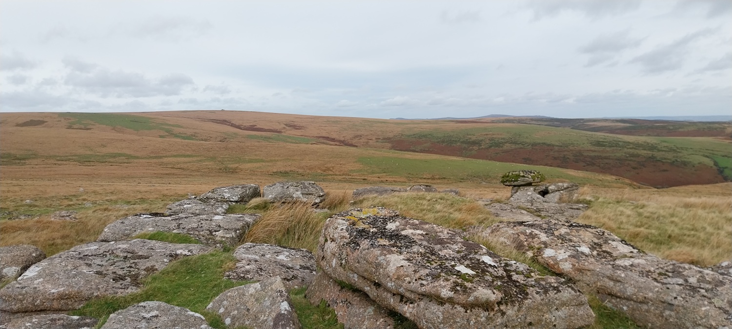 Probably one of the best named tors on Dartmoor and also one of the least frequently visited. This one sits on the southern moor not too far from Three Barrows and Ugborough Beacon. The top has a few granite lumps trying to be the top, however to me it looks as though the outcrop to the east just about wins. Its an easy walk to get here from Three Barrows, alternatively you can walk up from Shipley Bridge on a long steady climb, first towards Ball Gate. The views from the top are great to the south across Ugborough Moor and well as easterly across to Shipley Tor and Brent Hill. There are no military areas near here.
