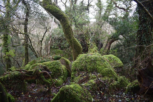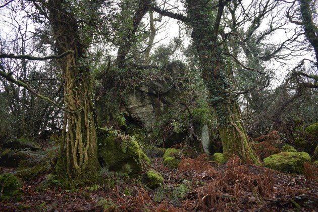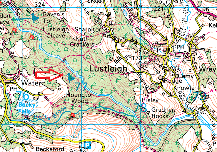 This is a fairly large rock sitting on the side of the western slope within Houndtor Wood, to the west of Lustleigh village. The outcrop is surrounded by trees so the views are non-existent but its a worthy outcrop that would have stood out before the trees grew. William Crossing in his book noted this rock as a notable landmark. The rock sits off the Dartmoor Way as its passes through Houndtor Wood, and as you reach a gate to head the the hamlet of Water, take a right and follow the track, after a short while head up left and follow a narrow path. This leads to Water Rock which will be up on your left, after leaving this rock the path drops steeply down towards the Lustleigh clam bridge, the path can be very slippery in winter so beware. There are no military ranges near here.