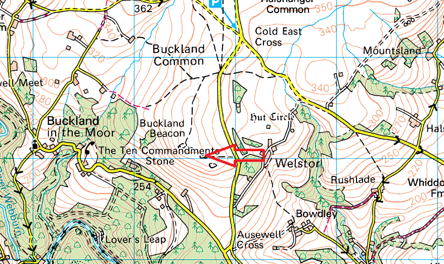 This is a small rocky outcrop just to the east of Buckland Beacon, with a good view down to the Dart valley. From this vantage point you can also see Teignmouth and Rippon Tor to the north. Nothing too difficult about getting here, park at Cold East Cross and head out towards Buckland Beacon, once there head across to Welstor Rock and loop back to Cold East Cross. There are no firing ranges near here.