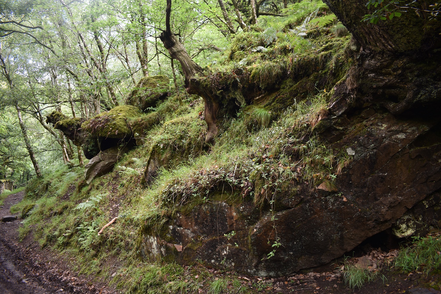The path heading up the hill, the outcrop is to my right here