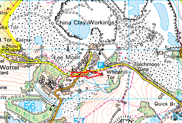 This is a small tor and one of three on my list that is not inside the Dartmoor National Park boundary don’t confuse this one with White Hill, over on the western side of the moor in the Willsworthy firing range. This small tor sits just to the south of the southern edge of Dartmoor near to the village of Lee Moor. Its right in the middle of all that is bad around Dartmoor with the huge scars of the China Clay works and the new Tungsten mine surrounding this tor. These dominate the view in all directions. The walk here isn’t hard at all, being 20 metres from the road, with parking spots in Lee Moor village or 100 metres down the road from the tor, and the outcrops themselves are pretty good, especially when the bracken is down. No military firing areas near here.