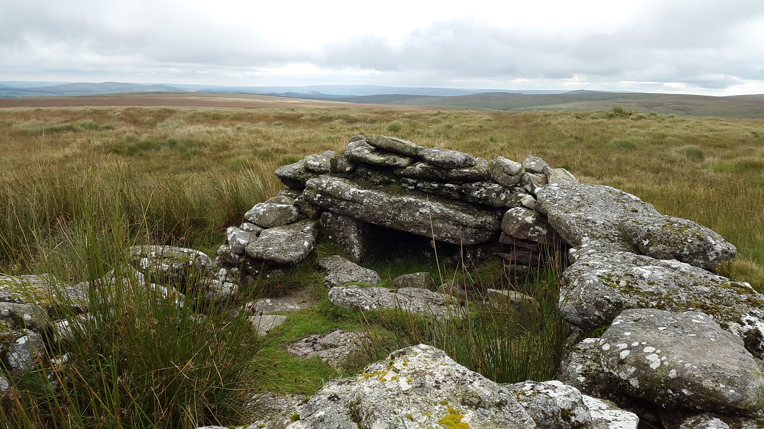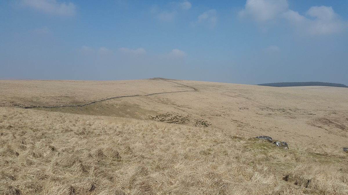 Winney’s Down is a large flatish area of open moorland not far from Fernworthy Forest, sitting between the East Dart river and Sittaford Tor. The area itself generally sits above the 520m contour and is covered with the tussocky grass so prevalent on these parts of Dartmoor. Statts House (an old peat cutting shelter) sits at the high point of the down, there’s also a couple of rocky granite areas with a good view to the south through the East Dart valley marked on the map below, this is about a 1km SE from Statts House. For me Statts House is the summit. Starting from Postbridge and following the path to the East Dart Waterfall is probably the best way to get to Winney’s Down. Winney’s Down is on the edge of the Okehampton firing range although not within it.