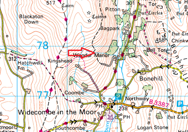 A strange name for a great set of rocks sitting on the side of Hameldown, overlooking Widecombe in the Moor and Chinkwell Tor. These rocks sit near the top of a small ravine as it tumbles down the hillside towards Wooder Manor. There is a small outcrop of rocks above, but the main, larger rocks sit beside the trees on the southern side of the ravine. The views are great from here, across to Chinkwell Tor, with Haytor also peeking up. Its a tricky outcrop to get to, however coming from Widecombe is the best approach, head along the road out of Widecombe towards Wooder Manor and turn second left up the hill. This will bring you out just south of the rocks it is then just a short stroll between the gorse and heather to the spot. There are no military ranges near here.