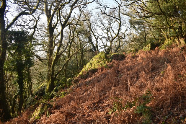 Some very large outcrops for this tor deep into Wray Cleave Woods. The woodland is owned by the woodland trust and if trying to follow the path and posts running north ish to south ish across the high point of the wood you will find most of the tors in this wood. This one however requires a slight deviation up from the path as it starts to drop down the hill more steeply towards the A382 towards Wray Barton farm. Instead of following the path hold the fence line to find this tor. No views here due to the trees and no firing ranges either.